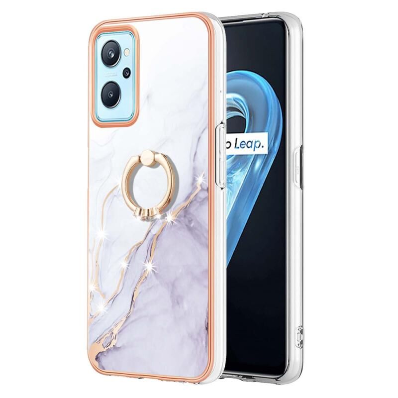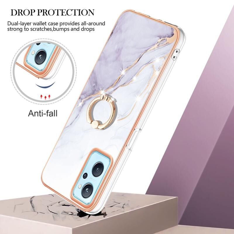 Θήκη τηλεφώνου TPU με σχέδιο μαρμάρου και ηλεκτρολυτική επικάλυψη για OPPO Realme 9i / A36 / A96 4G με δακτύλιο (Μωβ 001)