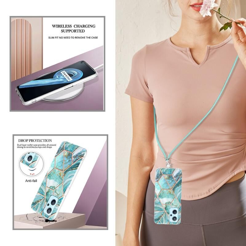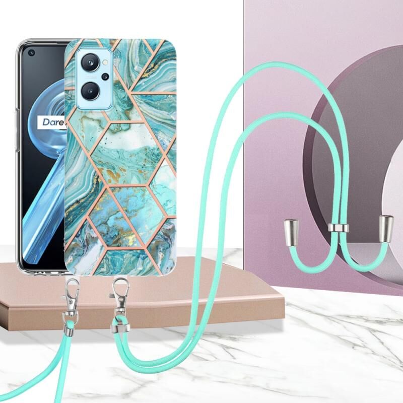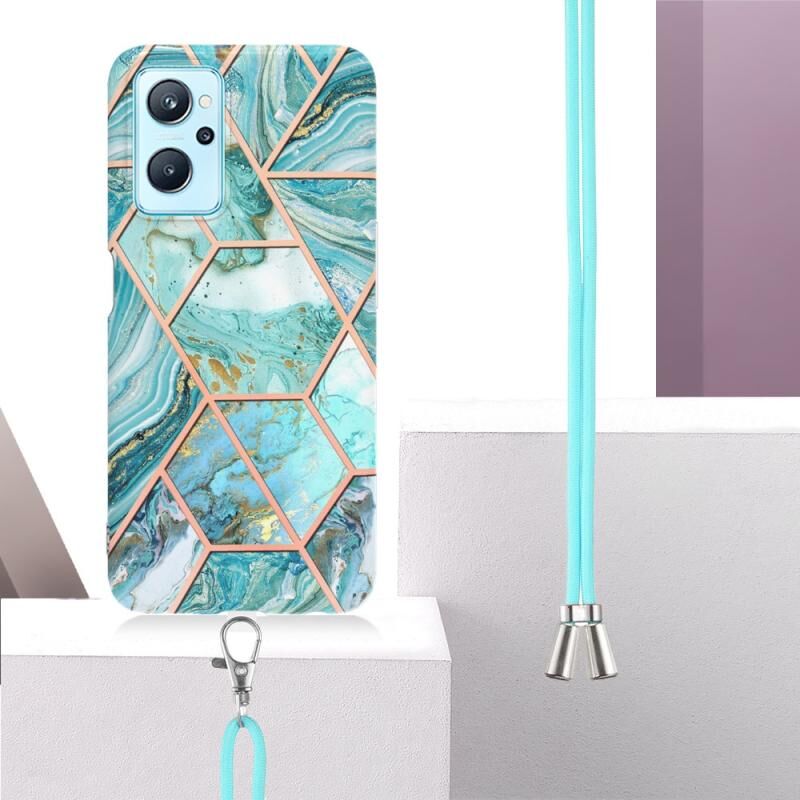 Θήκη τηλεφώνου TPU με γαλβανισμό και μαρμάρινη σύνθεση με κορδόνι για OPPO Realme 9i/A36/A96 4G (Μπλε)