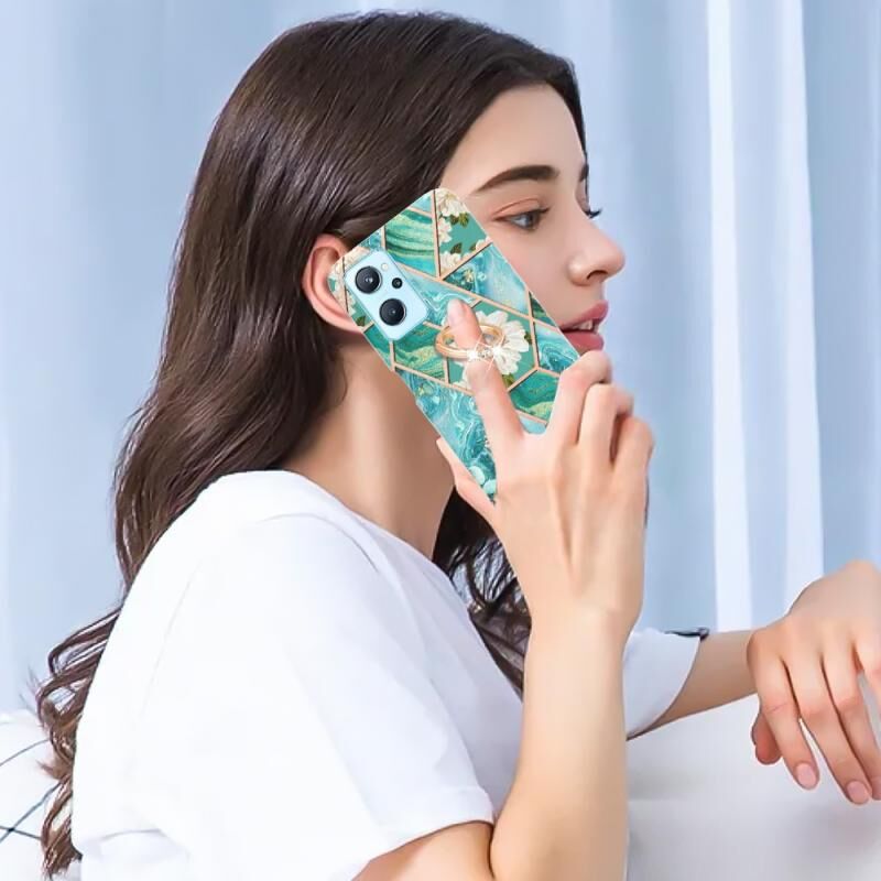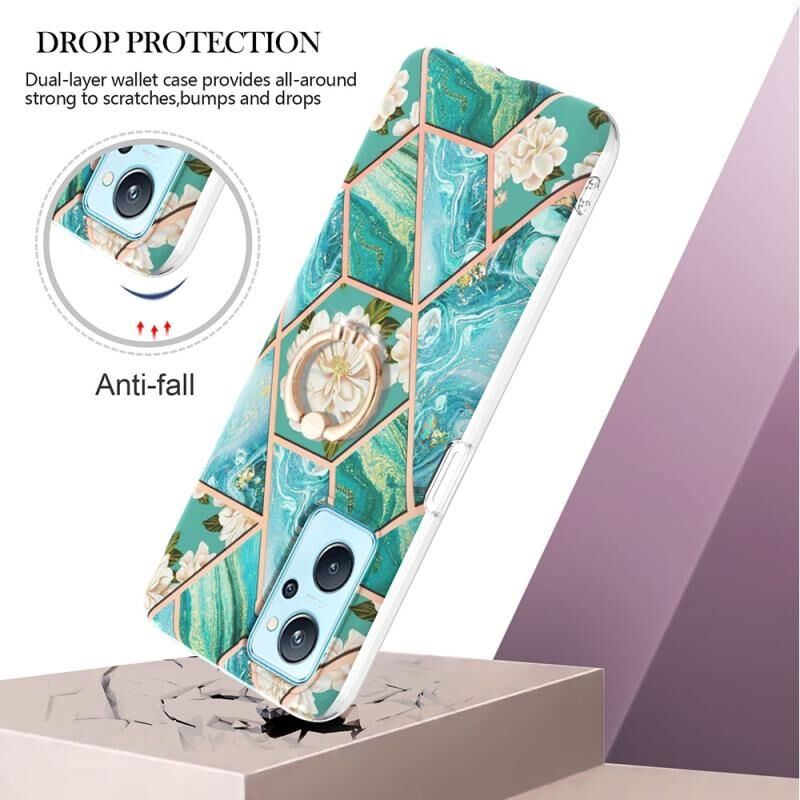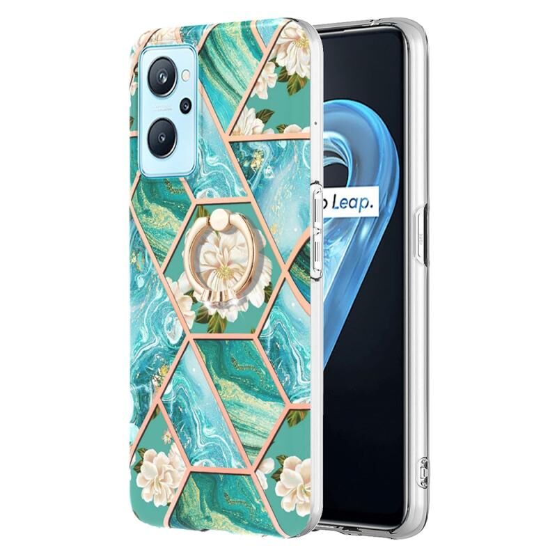 Θήκη για OPPO Realme 9i / A36 / A96 4G με σχέδιο μαρμάρου και λουλουδιών σε σπαστό στυλ, με δακτύλιο στήριξης (Ροζ Λουλούδι)