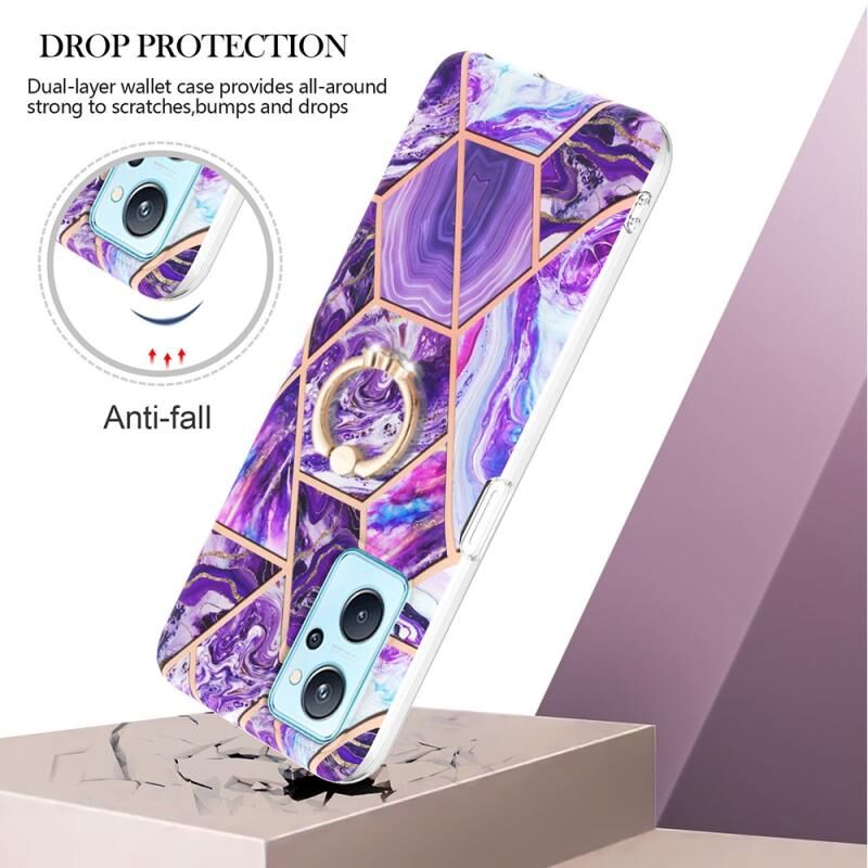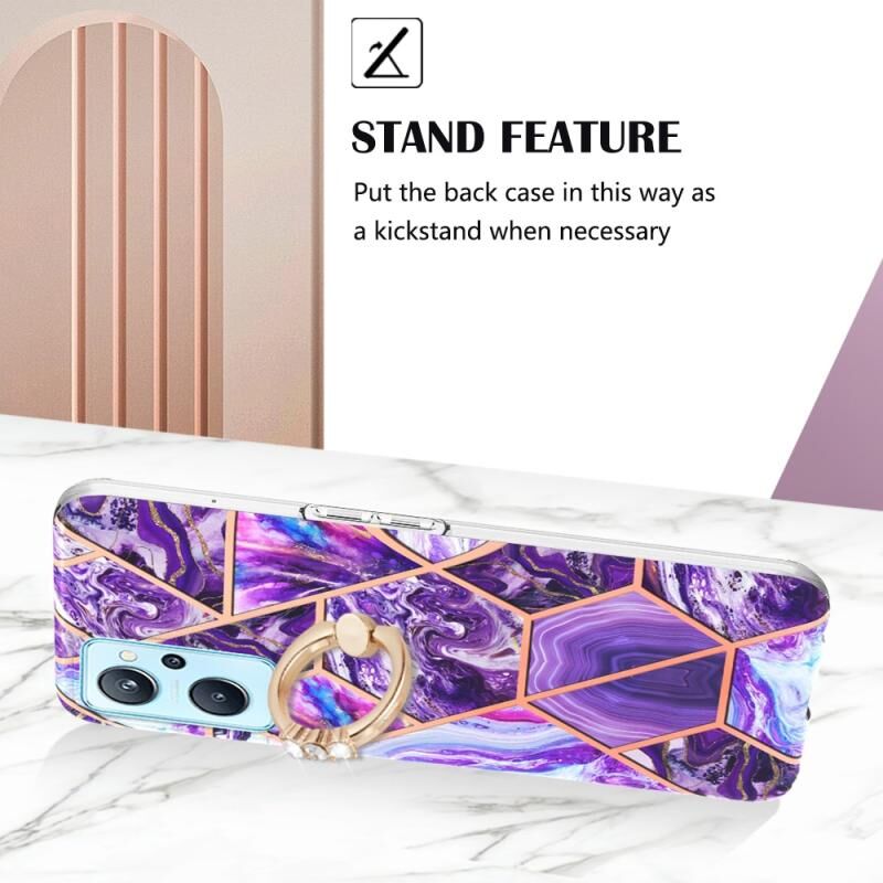 Θήκη για OPPO Realme 9i / A36 / A96 4G με σχέδιο μάρμαρου patchwork, διπλής όψης IMD TPU με δακτύλιο στήριξης (Ροζ Λευκό)