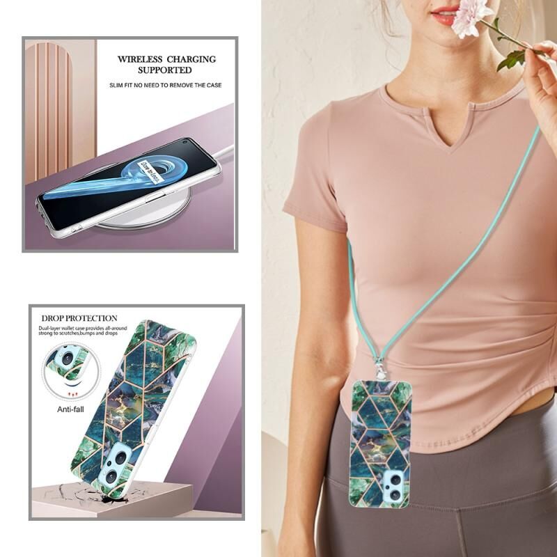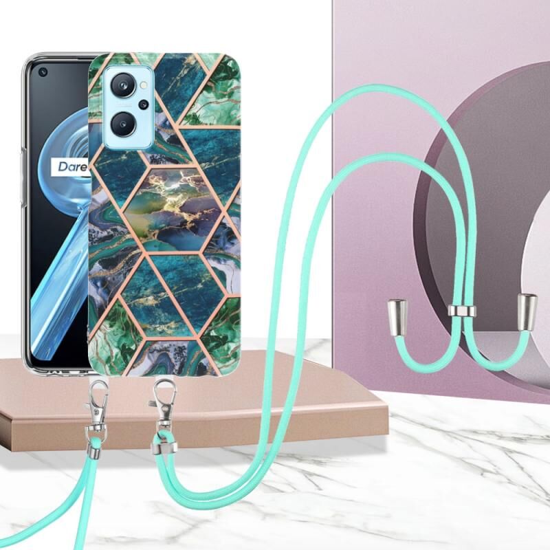 Θήκη τηλεφώνου TPU με ηλεκτρολυτική επιμετάλλωση και μαρμάρινο συνδυασμό για OPPO Realme 9i/A36/A96 με κορδόνι (Σκούρο Μωβ)