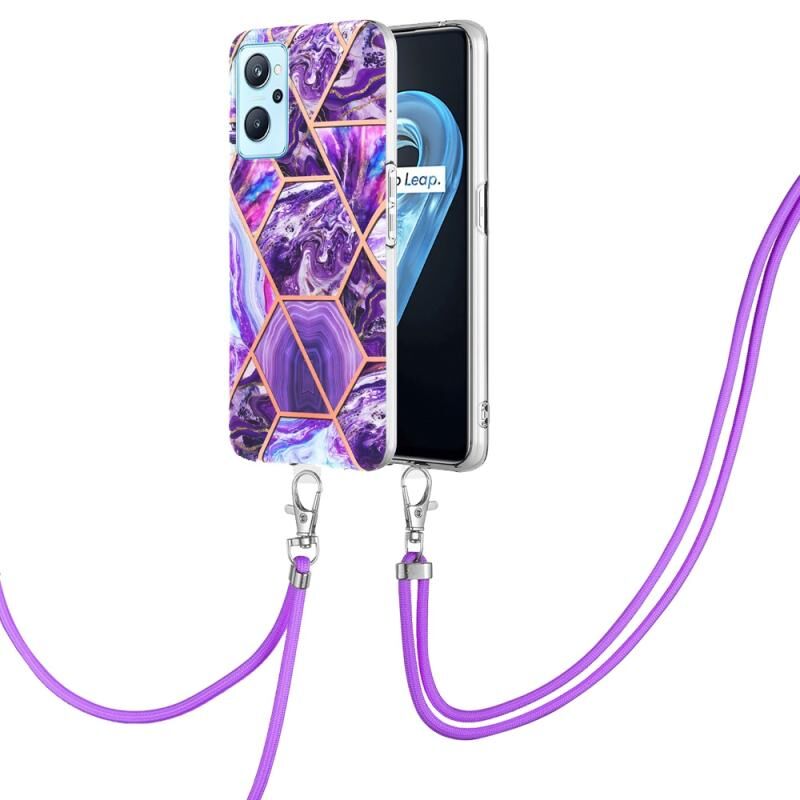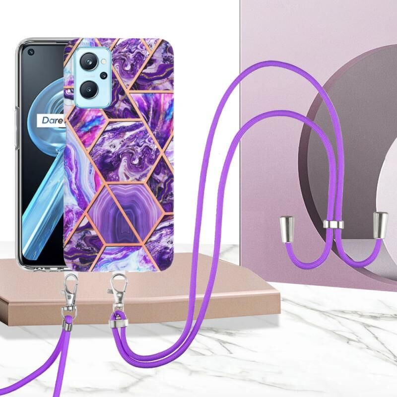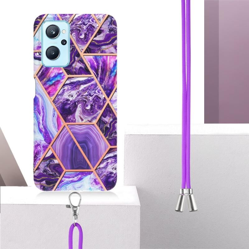 Θήκη τηλεφώνου TPU με ηλεκτρολυτική επιμετάλλωση και μαρμάρινο συνδυασμό για OPPO Realme 9i/A36/A96 με κορδόνι (Σκούρο Μωβ)