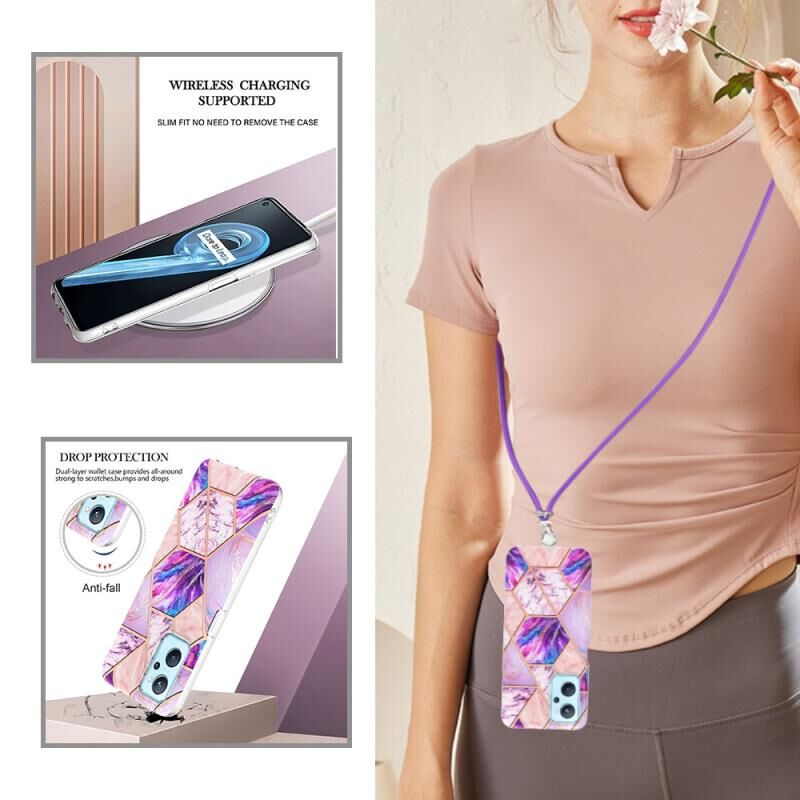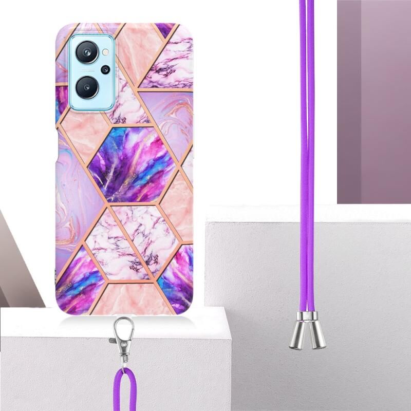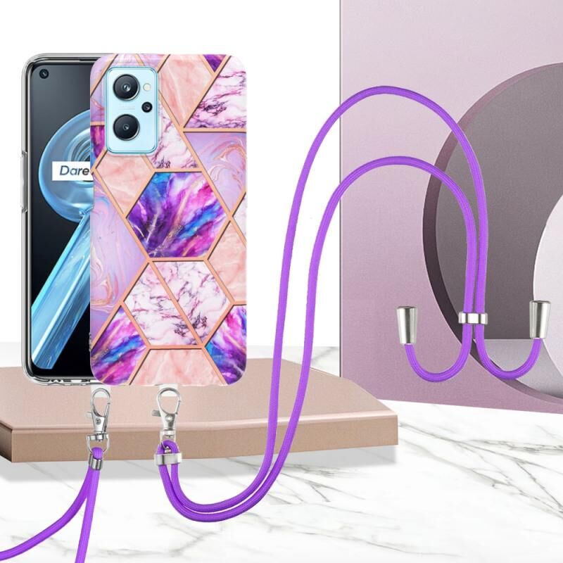 Θήκη τηλεφώνου TPU με ηλεκτρολυτική επιμετάλλωση και μαρμάρινο συνδυασμό για OPPO Realme 9i/A36/A96 με κορδόνι (Σκούρο Μωβ)