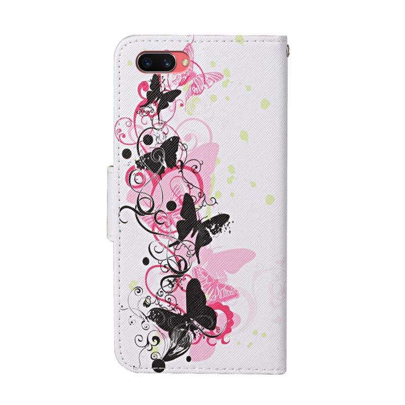 Θήκη δέρματος οριζόντιας αναδίπλωσης με σχέδιο πολύχρωμης ζωγραφικής για OPPO Realme C1 με βάση & υποδοχές καρτών & πορτοφόλι (Πεταλούδα)