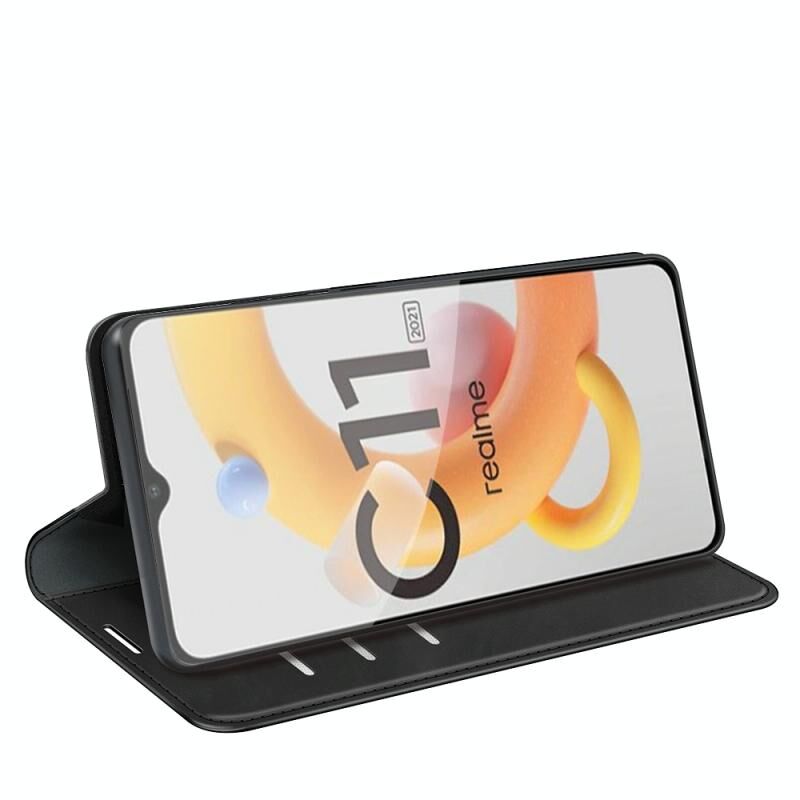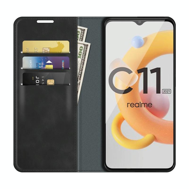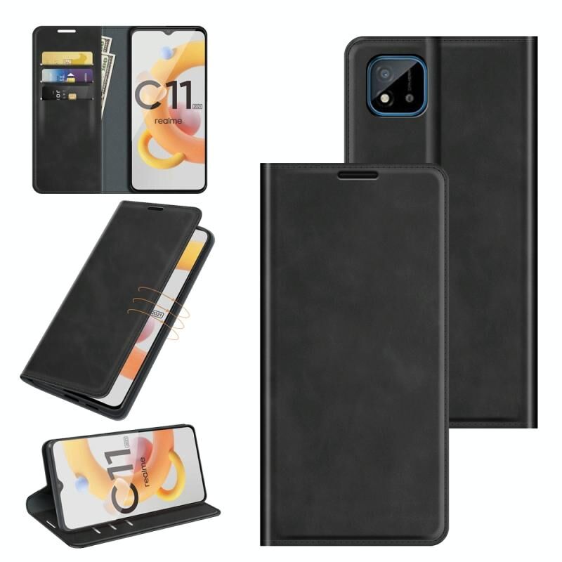 For OPPO Realme C11 2021 Retro-skin Business Magnetic Suction Leather Case with Holder & Card Slots & Wallet(Black)