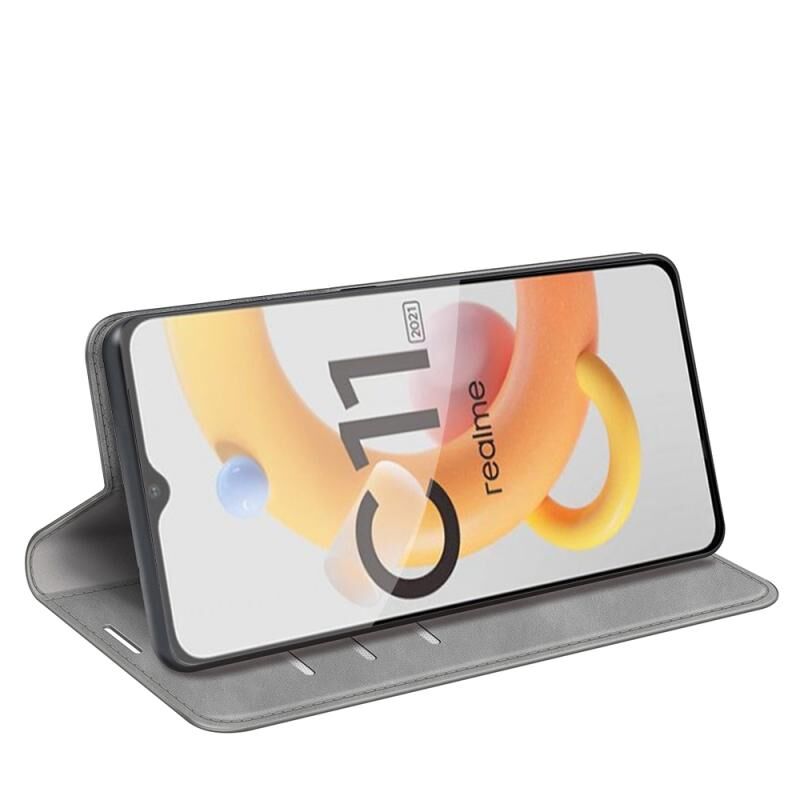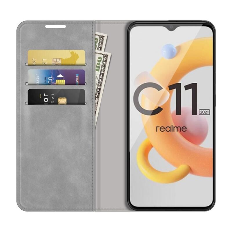 Για OPPO Realme C11 2021 Retro-skin Business Μαγνητική δερμάτινη θήκη αναρρόφησης με θήκη & υποδοχές καρτών & πορτοφόλι (γκρι)