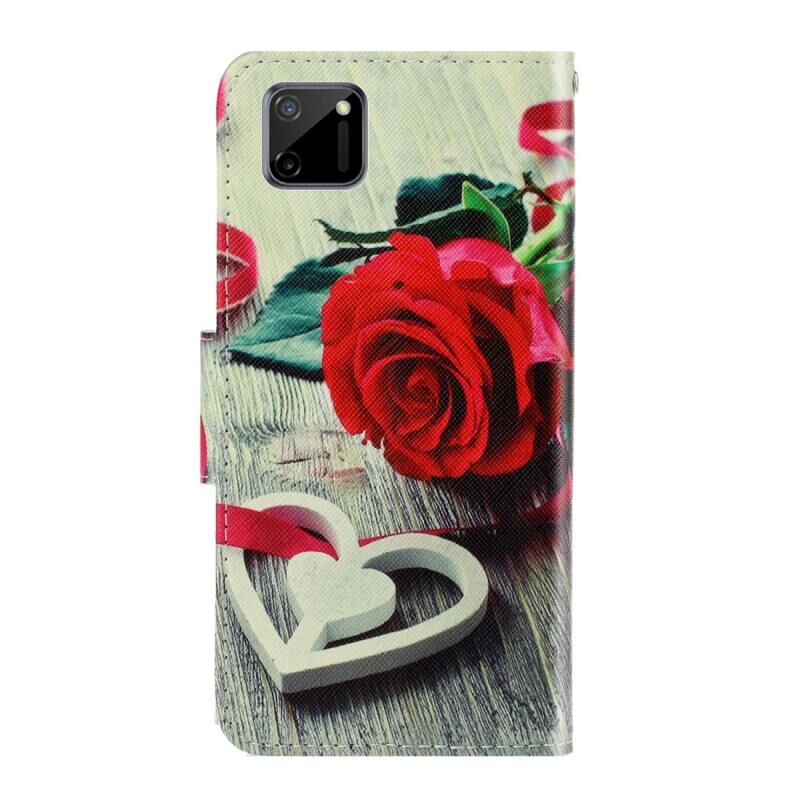 Θήκη για OPPO Realme C11 3D με έγχρωμο σχέδιο, οριζόντια αναδίπλωση από δερματίνη PU με βάση στήριξης & υποδοχές καρτών & πορτοφόλι (Κόκκινο Λουλούδι)