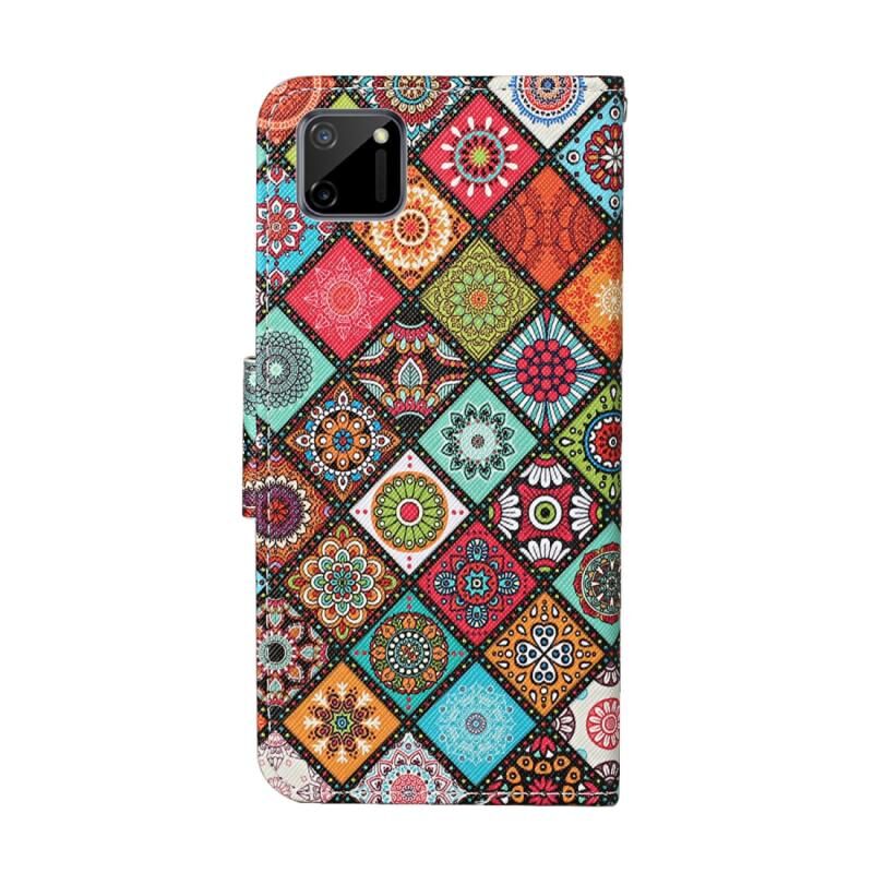 Θήκη δέρματος οριζόντιας αναδίπλωσης με σχέδιο πολύχρωμης ζωγραφικής για OPPO Realme C11 με βάση & υποδοχές καρτών & πορτοφόλι (Ρόμβος)