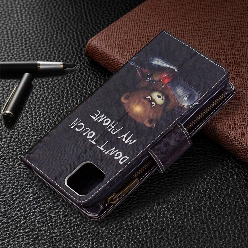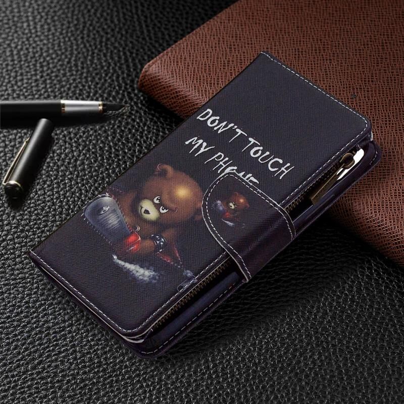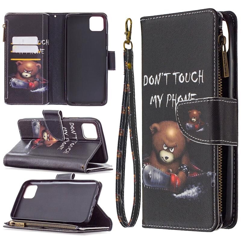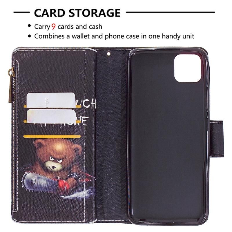 Θήκη δέρματος οριζόντιας αναδίπλωσης με φερμουάρ για OPPO Realme C11 με έγχρωμο σχέδιο, βάση στήριξης, θήκες για κάρτες και πορτοφόλι (Αρκούδα)