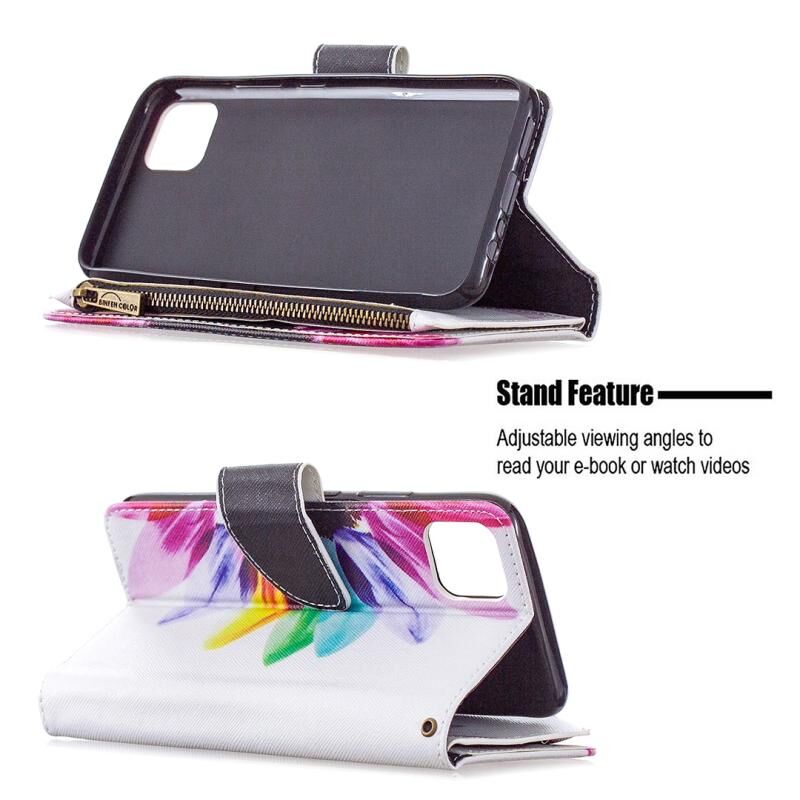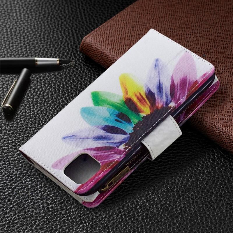 Θήκη δέρματος οριζόντιας αναδίπλωσης με φερμουάρ για OPPO Realme C11 με έγχρωμο σχέδιο, βάση στήριξης, θήκες για κάρτες & πορτοφόλι (Ηλιάνθος)