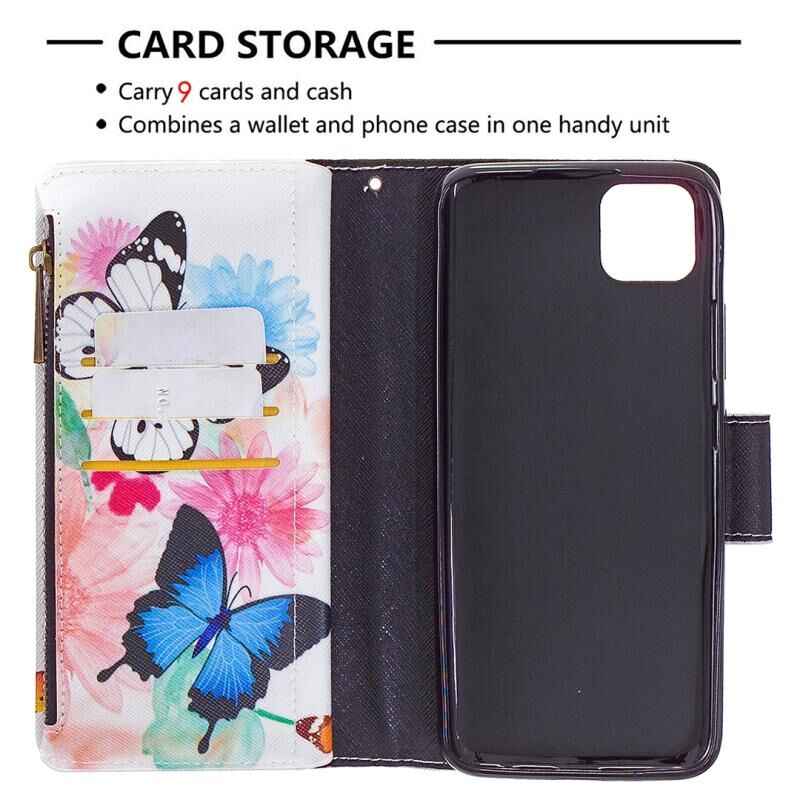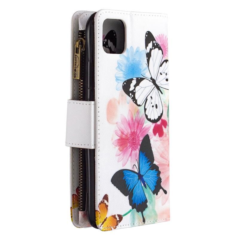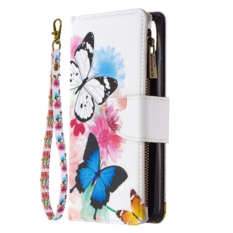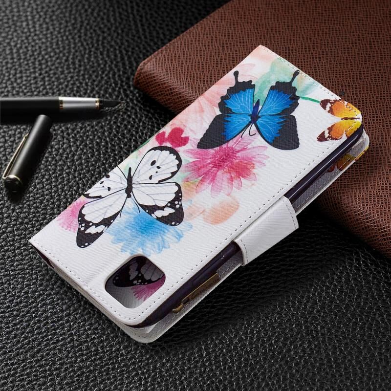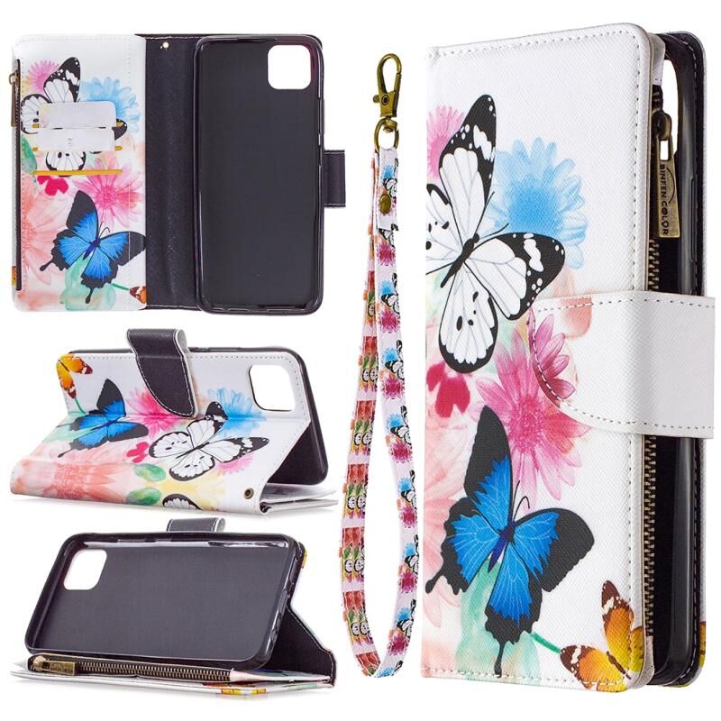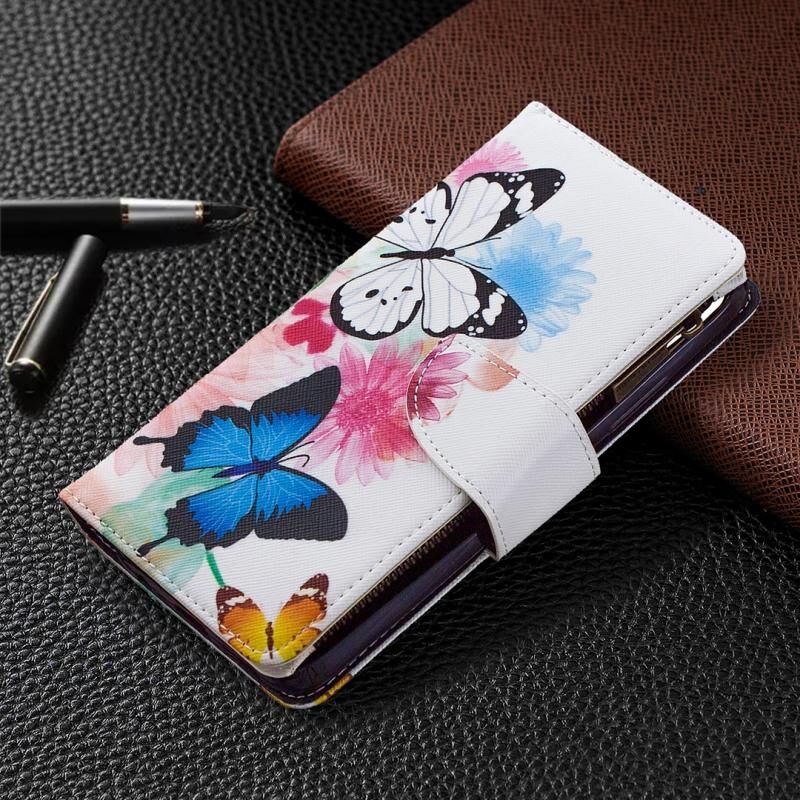 Θήκη δέρματος οριζόντιας αναδίπλωσης με φερμουάρ για OPPO Realme C11 με έγχρωμο σχέδιο, βάση στήριξης, θήκες για κάρτες & πορτοφόλι (Δύο Πεταλούδες)