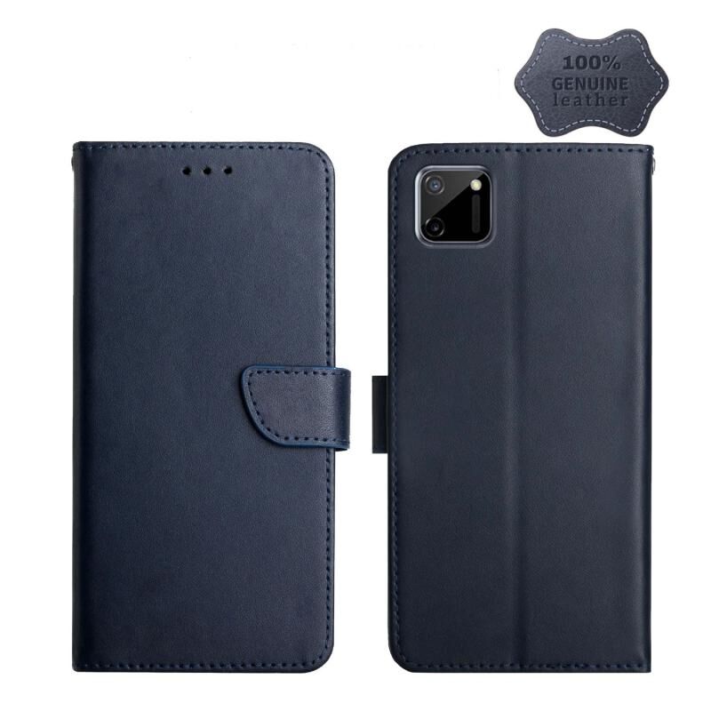 Θήκη τηλεφώνου OPPO Realme C11 από γνήσιο δέρμα, οριζόντια, με μαγνητικό κλείσιμο και προστασία από δακτυλικά αποτυπώματα (Μαύρο)