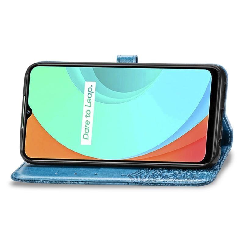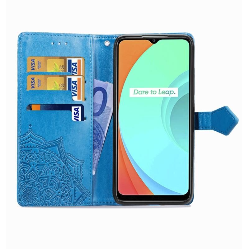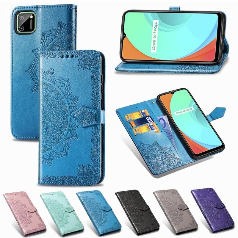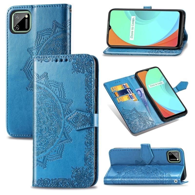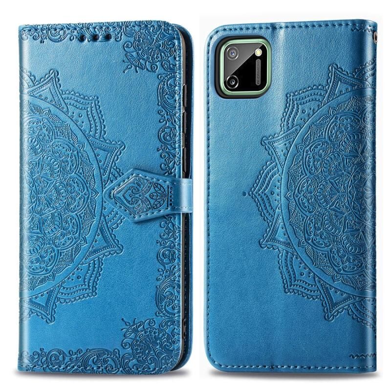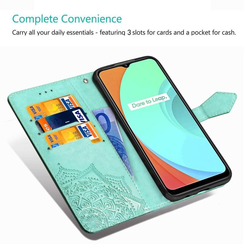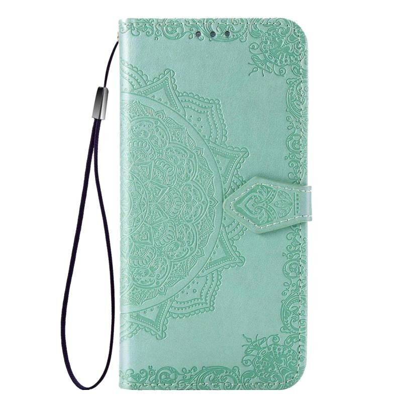 Θήκη δέρματος οριζόντιας αναδίπλωσης για OPPO Realme C11 με σχέδιο Mandala, λουλούδια σε ανάγλυφο, με βάση στήριξης / υποδοχή κάρτας / πορτοφόλι / κορδόνι (Πράσινο)