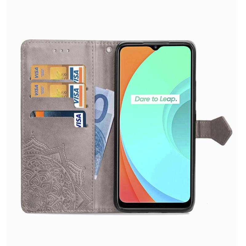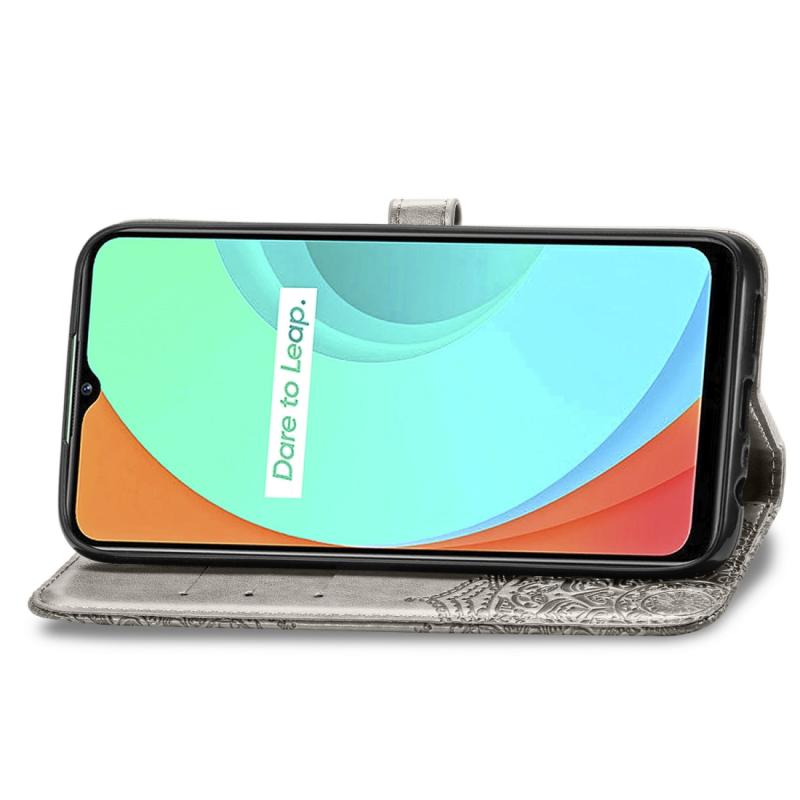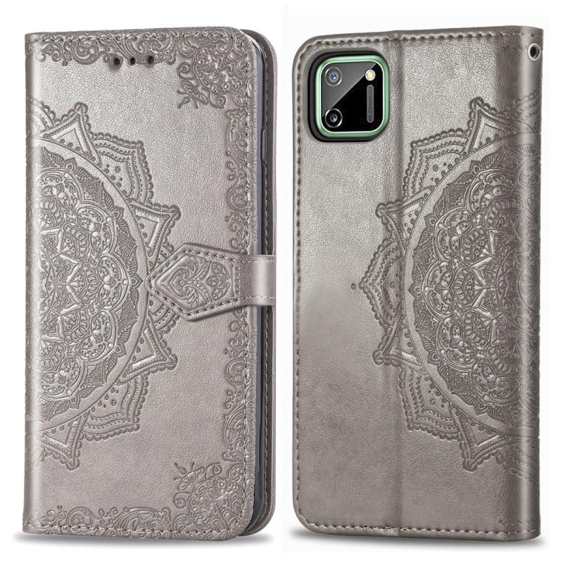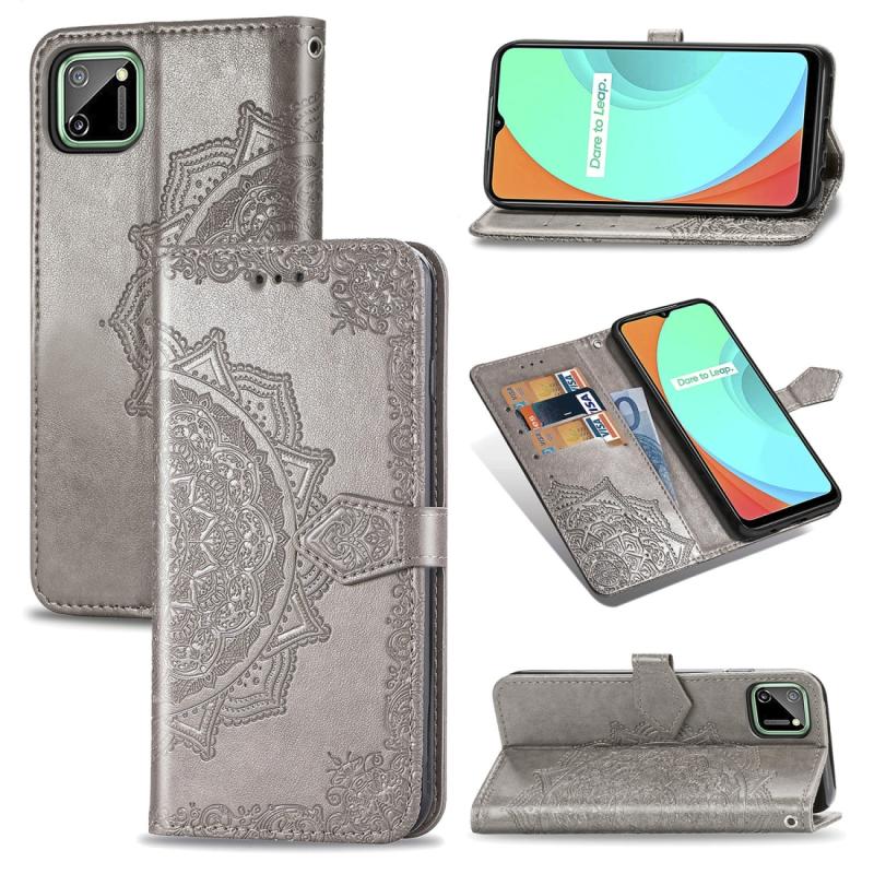 For OPPO Realme C11 Mandala Flower Embossed Horizontal Flip Leather Case with Bracket / Card Slot / Wallet / Lanyard(Gray)