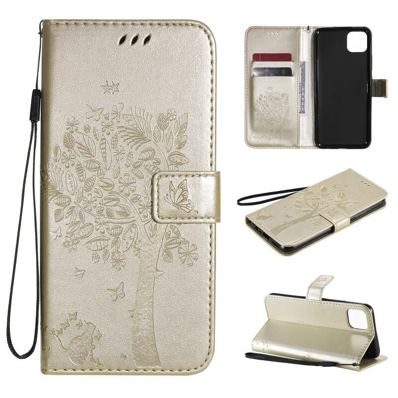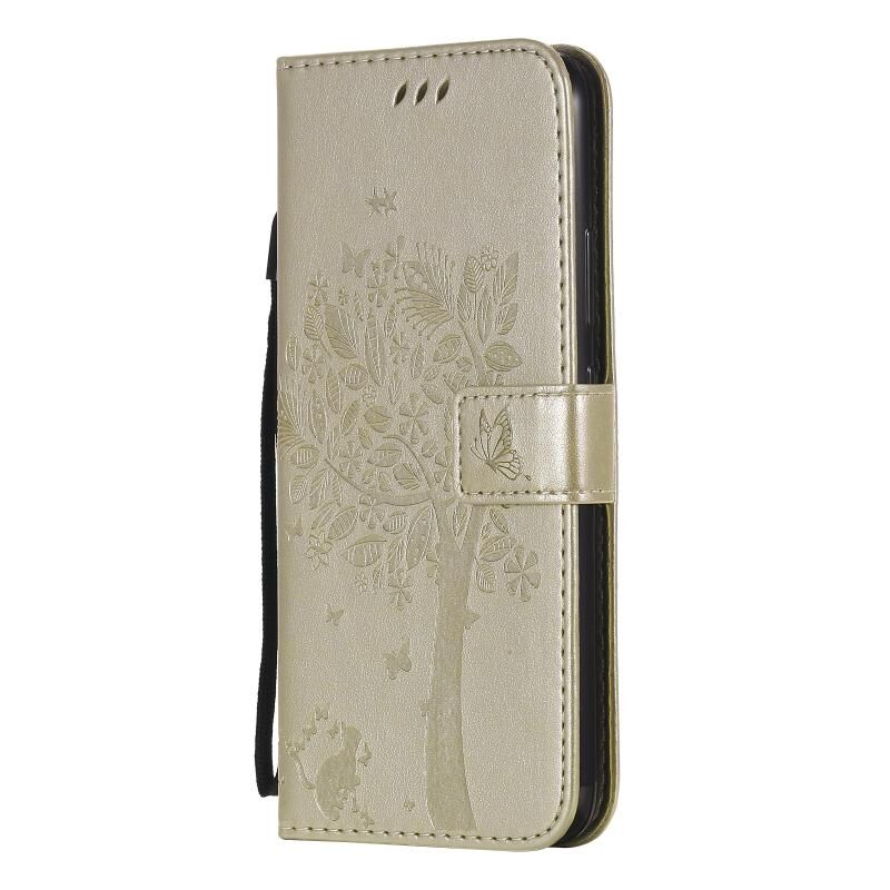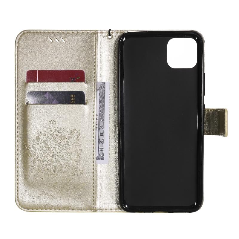 Θήκη δέρματος οριζόντιας αναδίπλωσης για OPPO Realme C11 με ανάγλυφο σχέδιο Δέντρου & Γάτας, με βάση στήριξης & υποδοχές καρτών & πορτοφόλι & κορδόνι (Πράσινο)