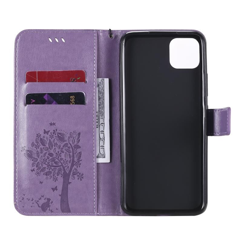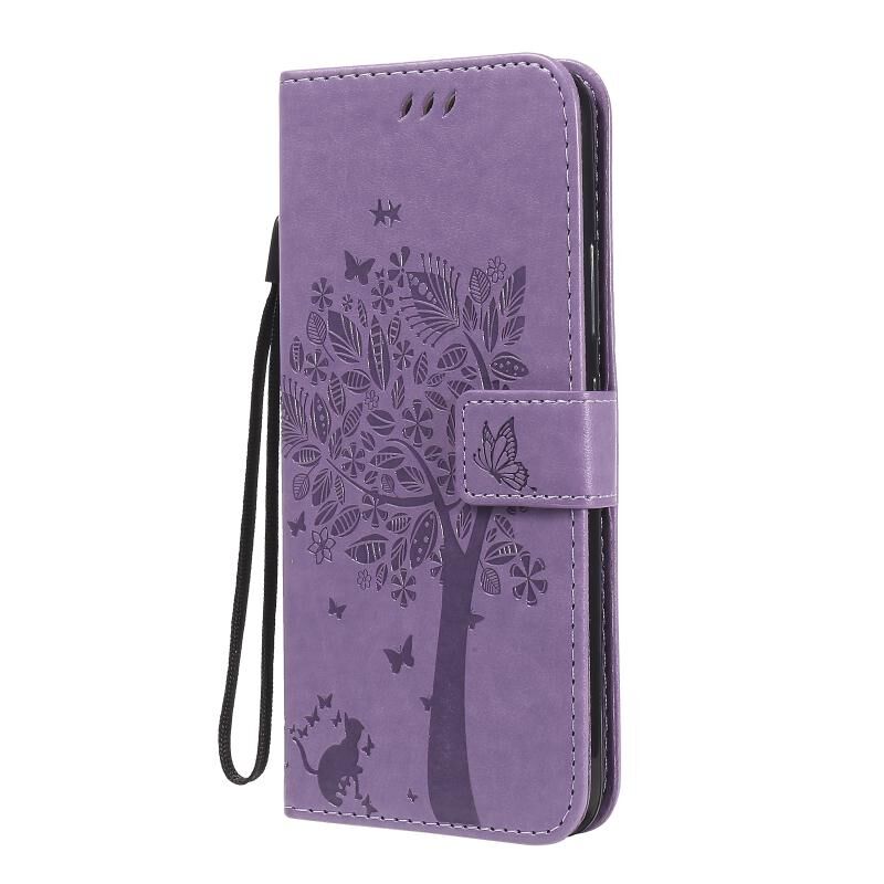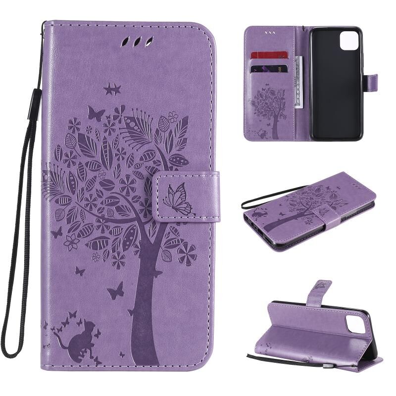 Θήκη δέρματος οριζόντιας αναδίπλωσης για OPPO Realme C11 με ανάγλυφο σχέδιο Δέντρου & Γάτας, με βάση στήριξης & υποδοχές καρτών & πορτοφόλι & κορδόνι (Πράσινο)