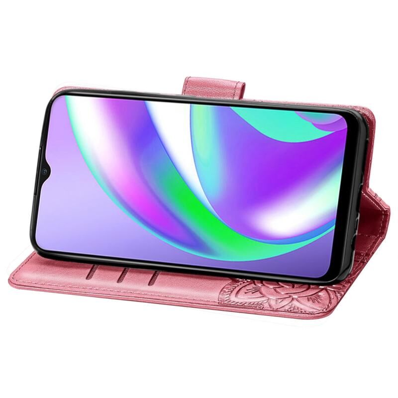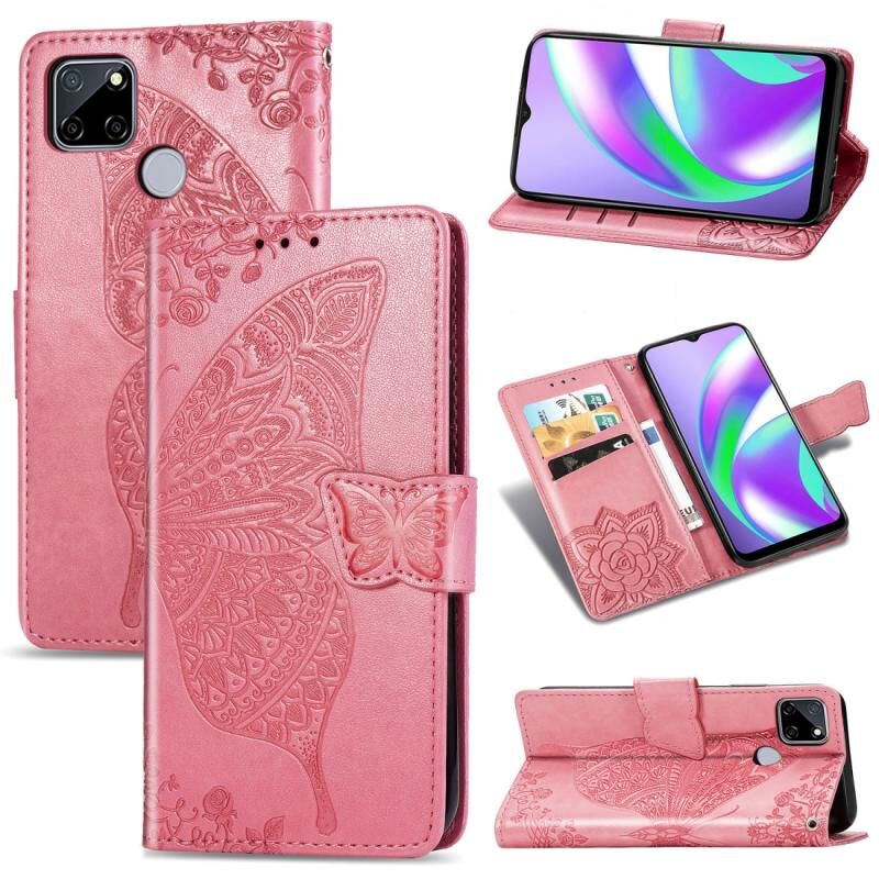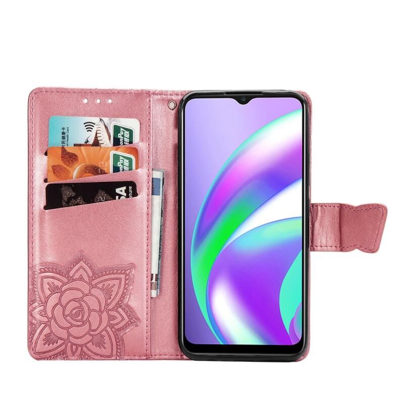 For OPPO Realme C12 Butterfly Love Flower Embossed Horizontal Flip Leather Case with Holder & Card Slots & Wallet & Lanyard(Pink)