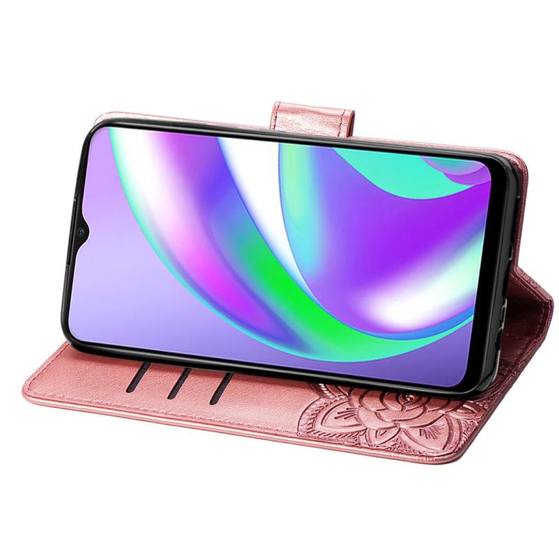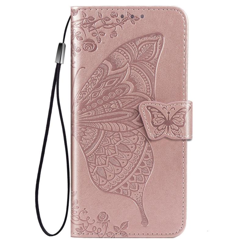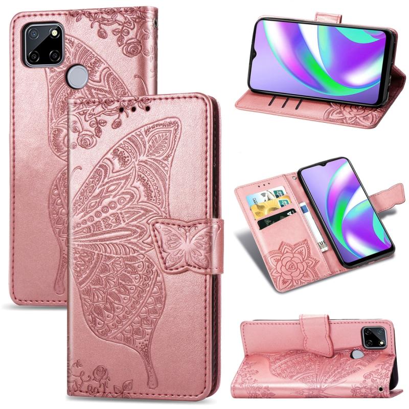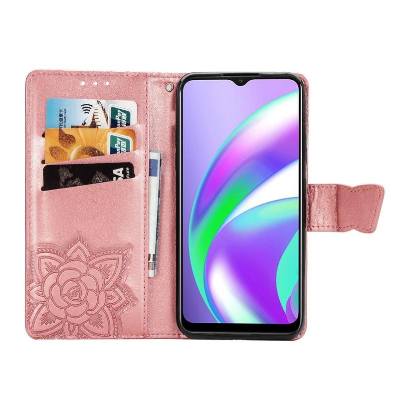 For OPPO Realme C12 Butterfly Love Flower Embossed Horizontal Flip Leather Case with Holder & Card Slots & Wallet & Lanyard(Rose Gold)