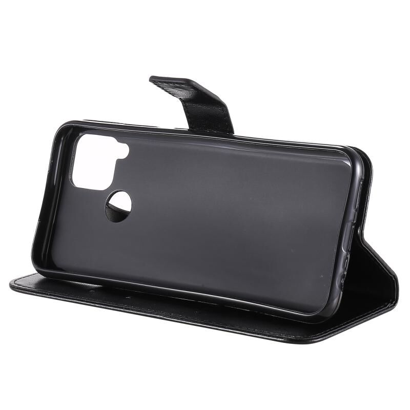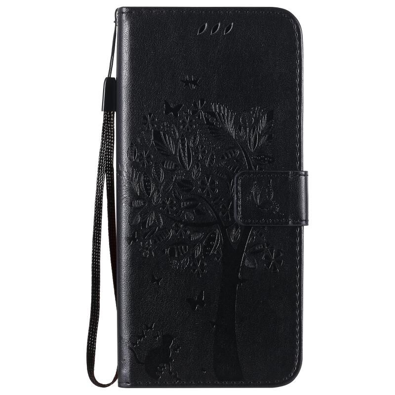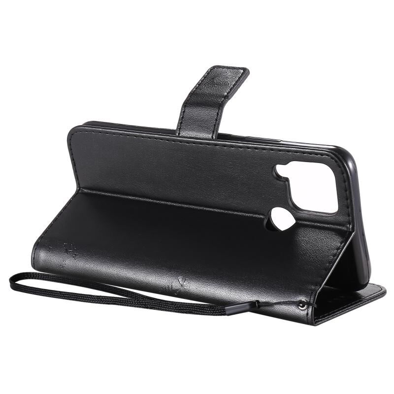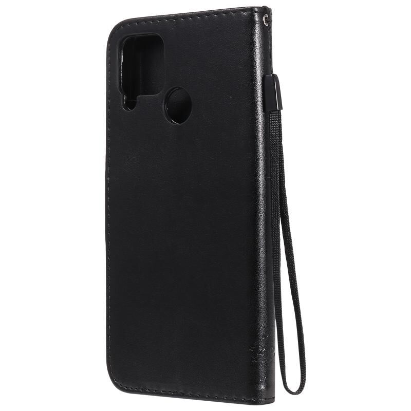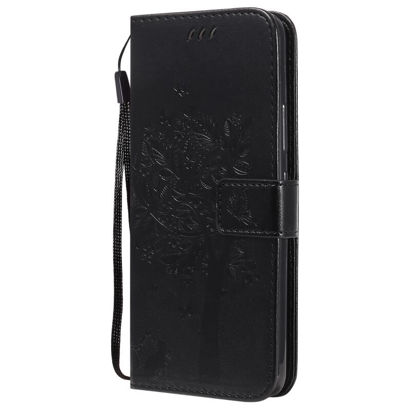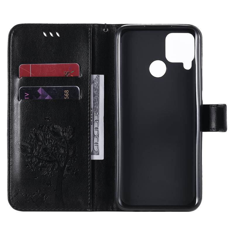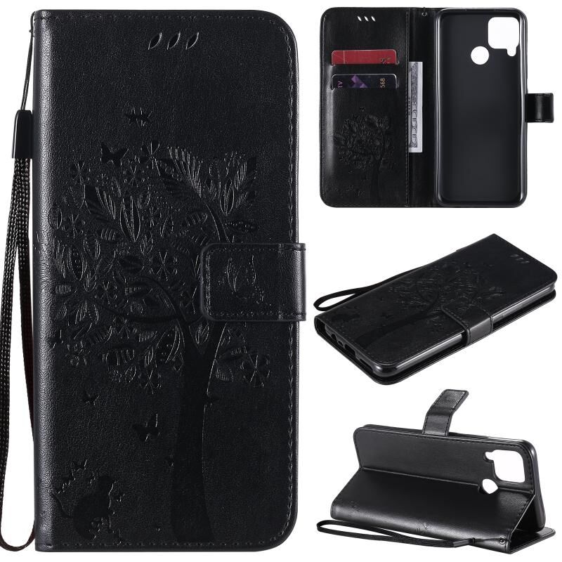 For OPPO Realme C12 / C15 Tree & Cat Embossed Pattern Horizontal Flip Leather Case with Holder & Card Slots & Wallet & Lanyard(Black)