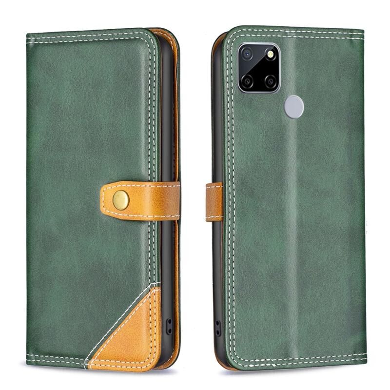 Θήκη τηλεφώνου από δέρμα με διπλή ραφή και αντιστοίχιση χρωμάτων για OPPO Realme C12 (Μαύρο)
