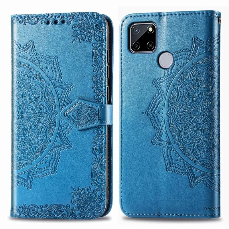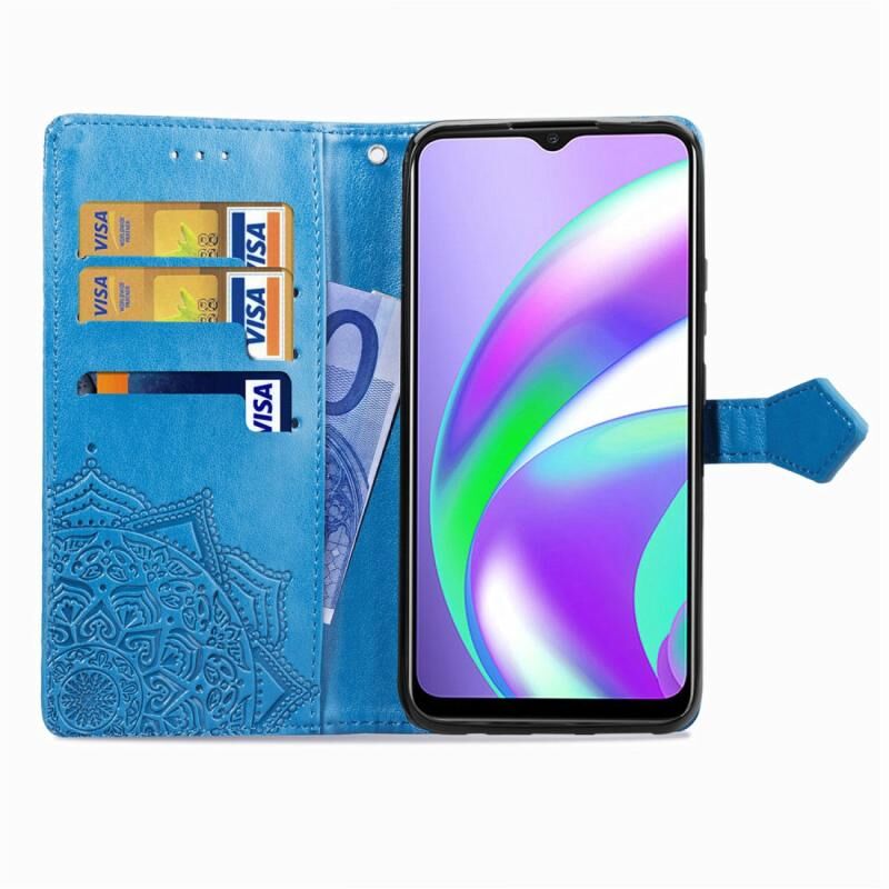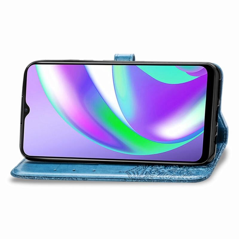 Θήκη δέρματος οριζόντιας αναδίπλωσης για OPPO Realme C12 με ανάγλυφο σχέδιο Mandala, λουλουδιών, με βάση στήριξης / υποδοχή κάρτας / πορτοφόλι / κορδόνι (Μαύρο)