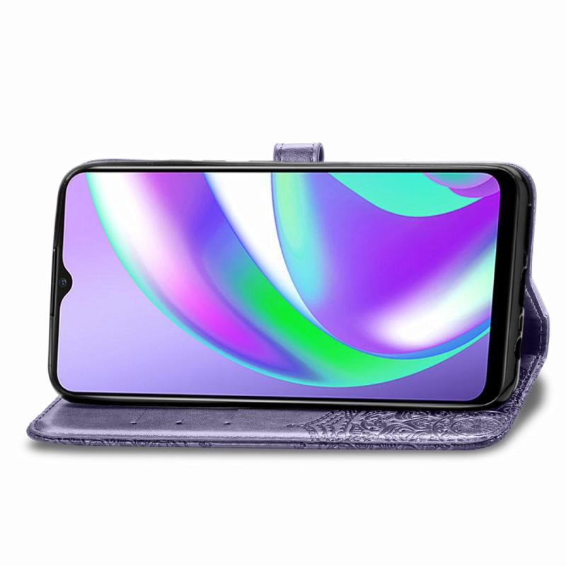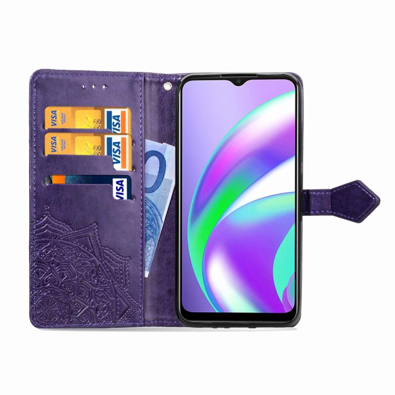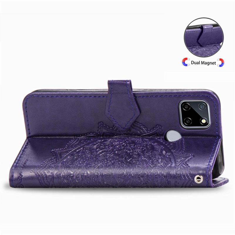 For OPPO Realme C12 Mandala Flower Embossed Horizontal Flip Leather Case with Bracket / Card Slot / Wallet / Lanyard(Purple)