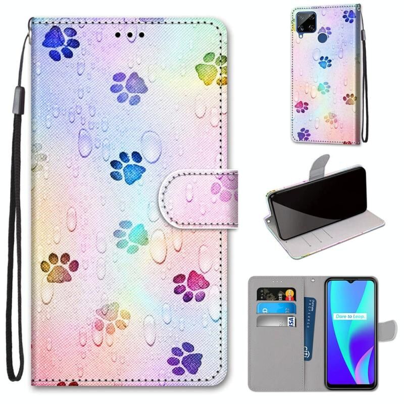 Για OPPO Realme C15 / C12 / C25 / 7i (Global) / Narzo 20 / 30A Θήκη από Δέρμα PU με Οριζόντιο Άνοιγμα, Χρωματιστό Σχέδιο, Υφή Σταυρού, με Θήκη, Θήκες Καρτών, Πορτοφόλι & Λουρί (Αποτύπωμα Σταγονιδίων Νερού)