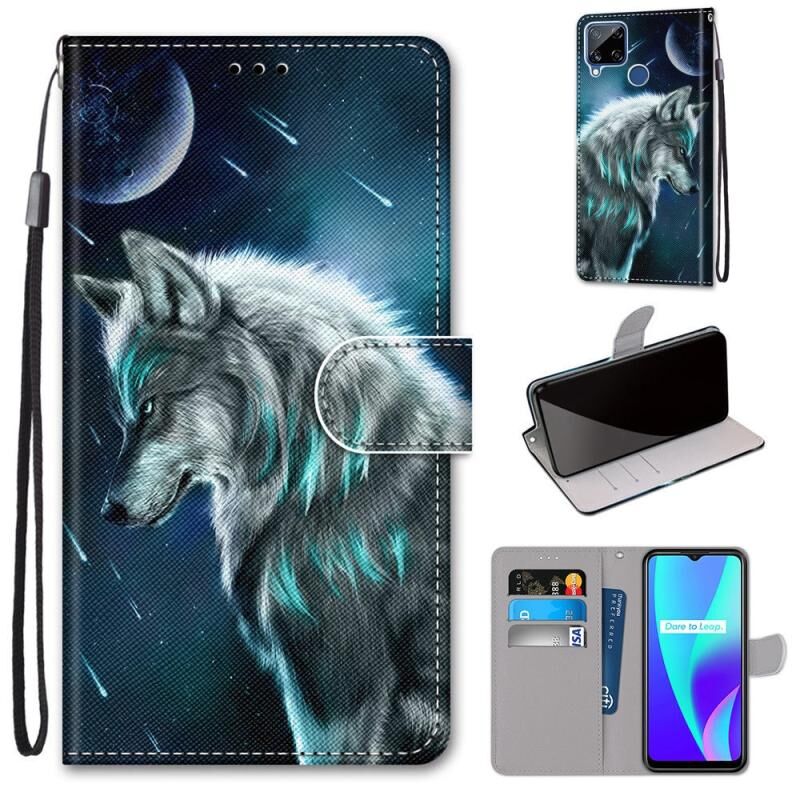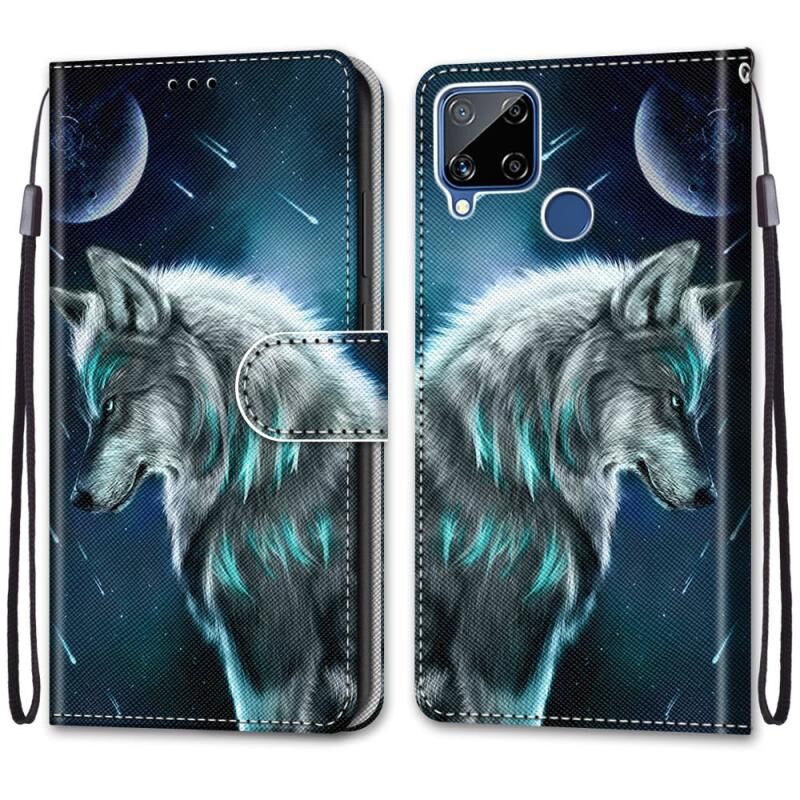 Για OPPO Realme C15 / C12 / C25 / 7i (Global) / Narzo 20 / 30A Θήκη από Δέρμα PU με Σταυρωτή Υφή, Οριζόντιο Άνοιγμα, με Θήκη, Θήκες Καρτών, Πορτοφόλι & Λουρί (Σκεπτικός Λύκος)