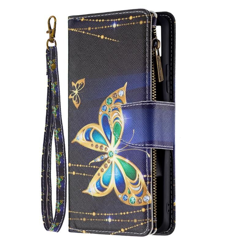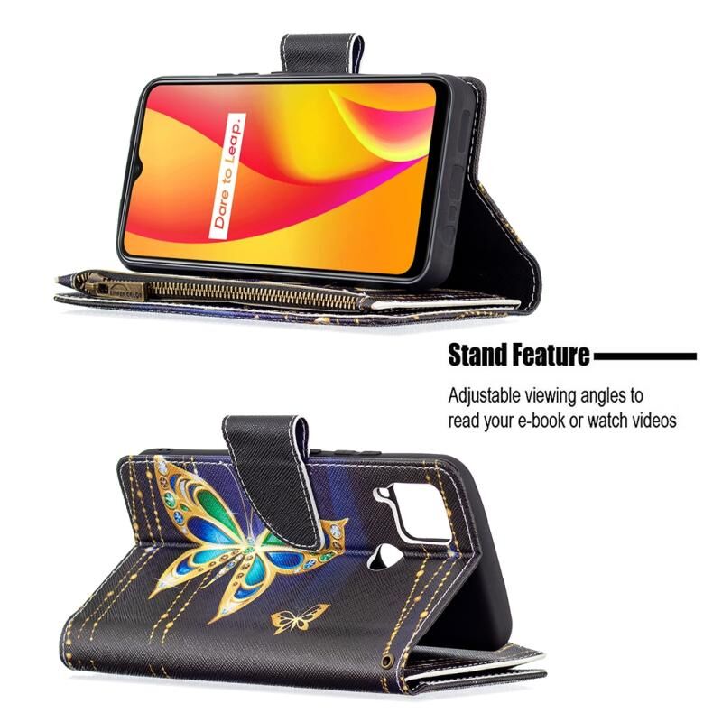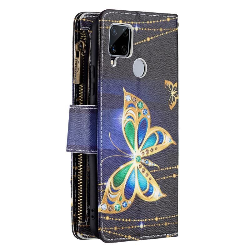Θήκη δέρματος οριζόντιας αναδίπλωσης με φερμουάρ και σχέδια ζωγραφικής για OPPO Realme C15/C12/C25 με βάση στήριξης & υποδοχές καρτών & πορτοφόλι (Μεγάλη Πεταλούδα)