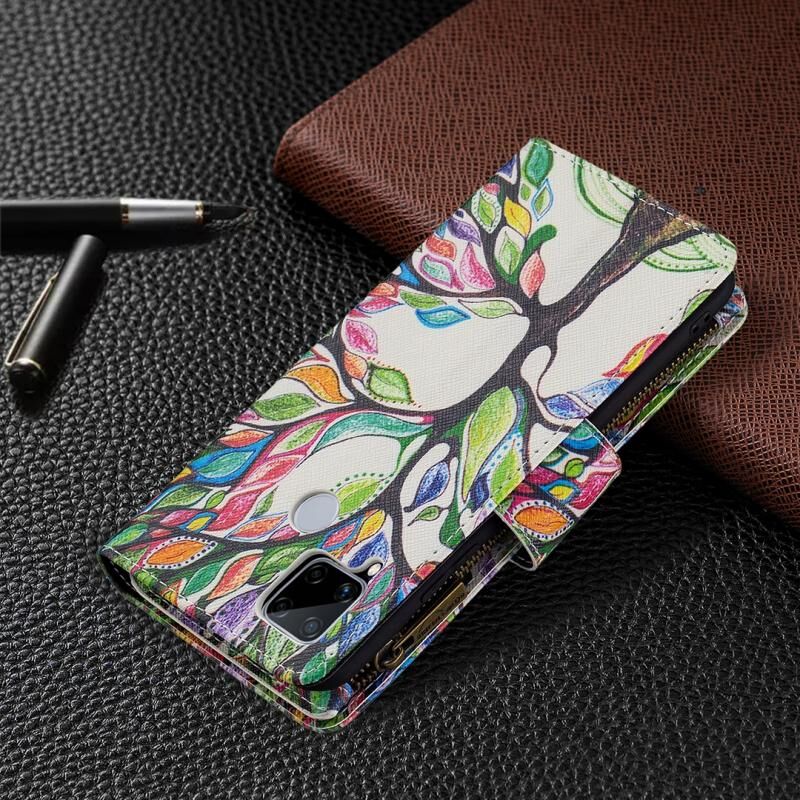 Θήκη δέρματος οριζόντιας αναδίπλωσης με φερμουάρ και σχέδια ζωγραφικής για OPPO Realme C15/C12/C25 με βάση στήριξης & υποδοχές καρτών & πορτοφόλι (Μεγάλο Δέντρο)