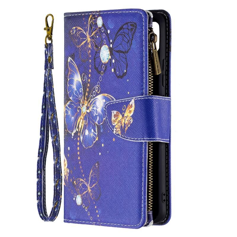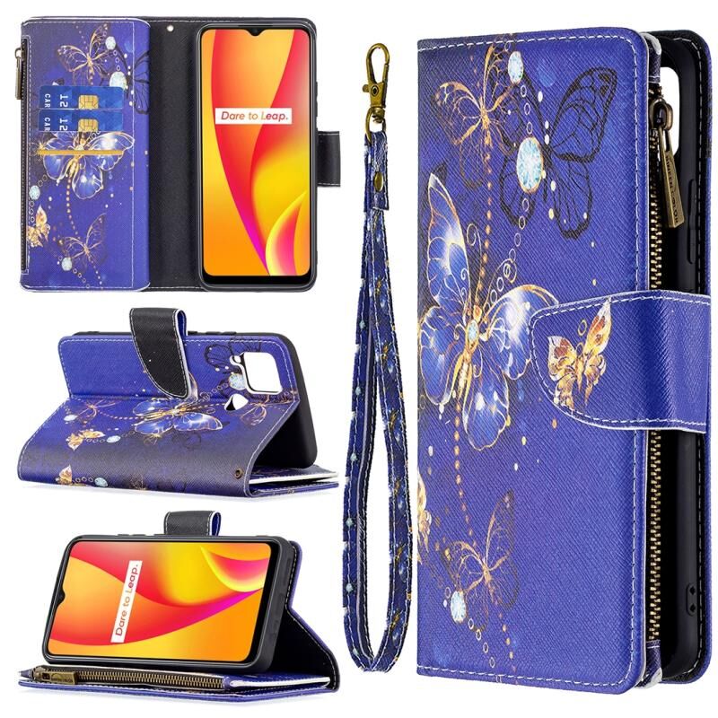 Θήκη δέρματος οριζόντιας αναδίπλωσης με φερμουάρ και σχέδια ζωγραφικής για OPPO Realme C15/C12/C25 με βάση για κάρτες και πορτοφόλι (Μωβ Πεταλούδα)