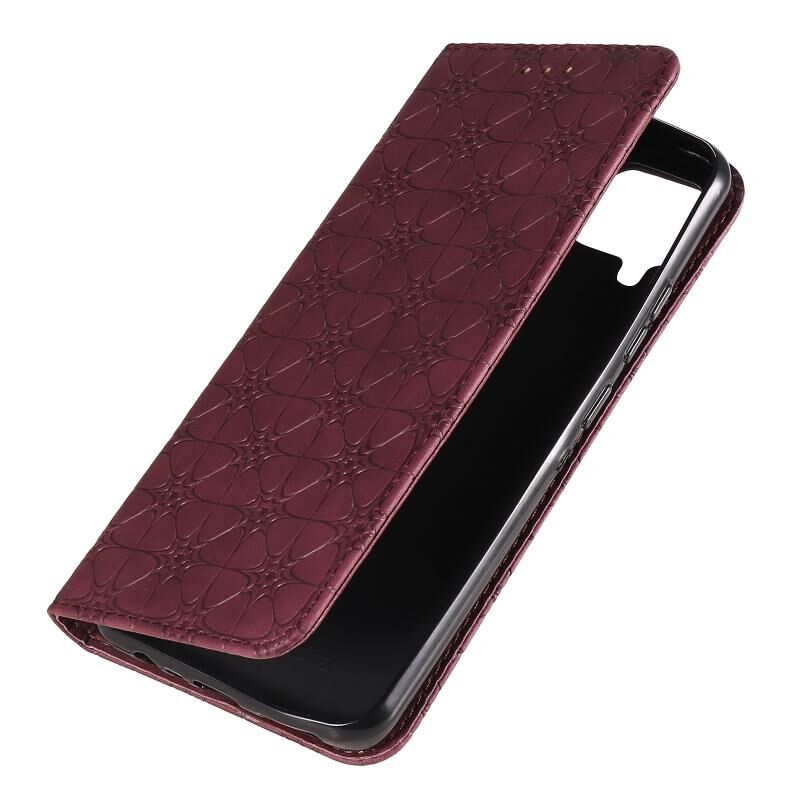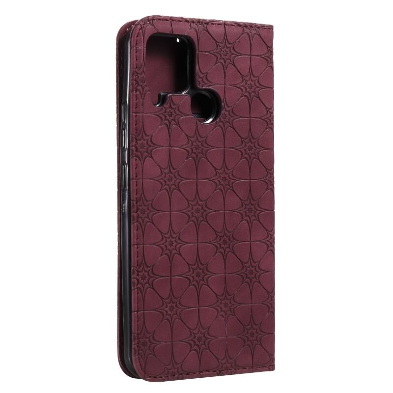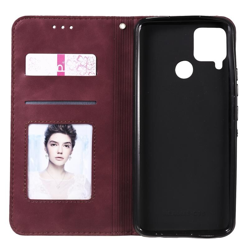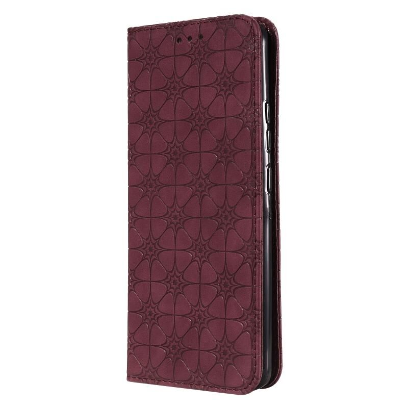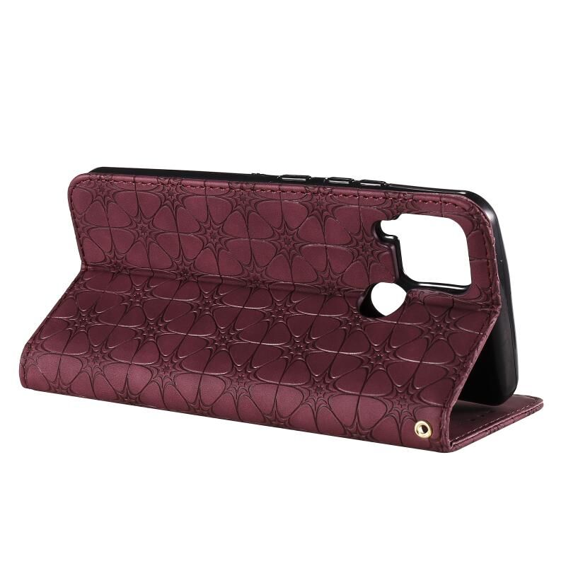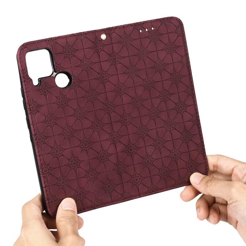 For OPPO Realme C15 / C12 Lucky Flowers Embossing Pattern Magnetic Horizontal Flip Leather Case with Holder & Card Slots(Wine Red)
