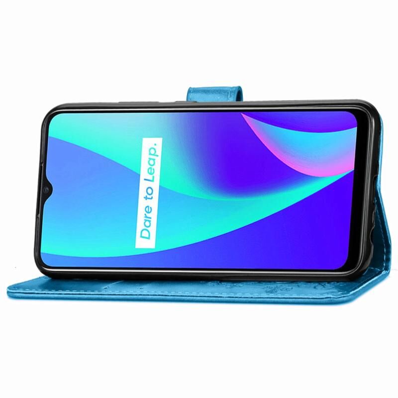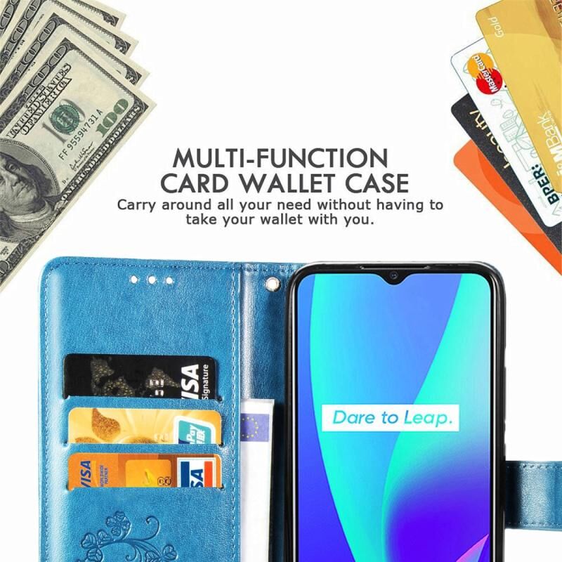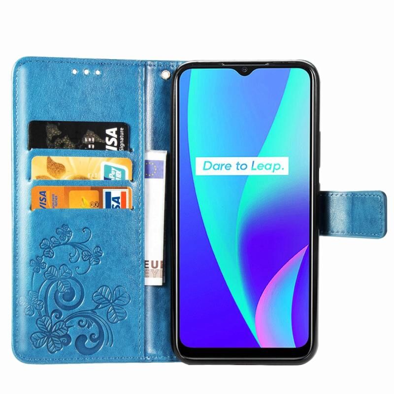 Για OPPO Realme C15 Θήκη Προστασίας Δερμάτινη για Κινητό με Σχέδιο Τριφυλλιού, Μαγνητικό Κούμπωμα, Λουρί, Θήκη Κάρτας, Πορτοφόλι & Στήριξη (Μπλε)