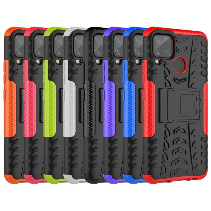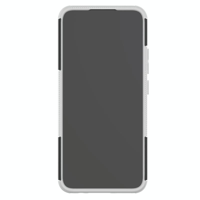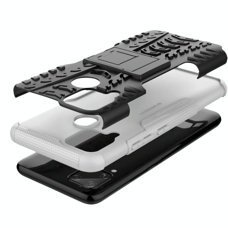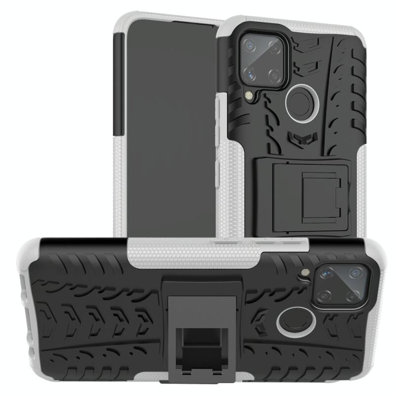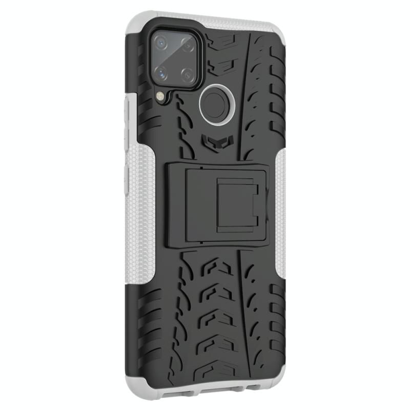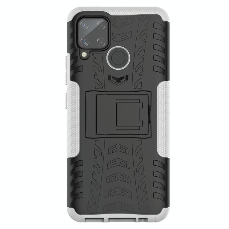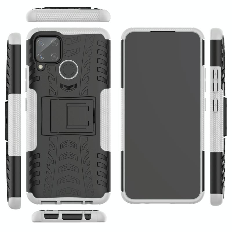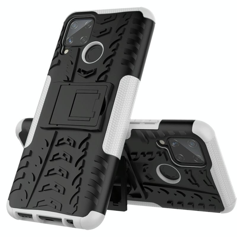 Για OPPO Realme C15 ελαστικών υφή Shockproof TPU + PC προστατευτική θήκη με κάτοχο (λευκό)