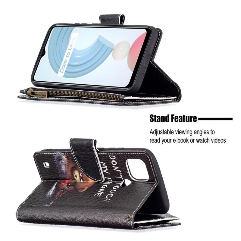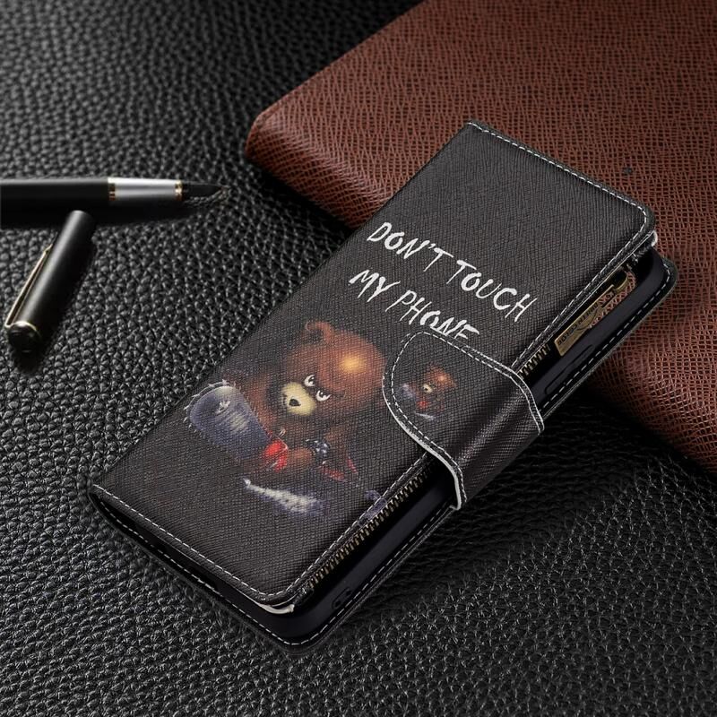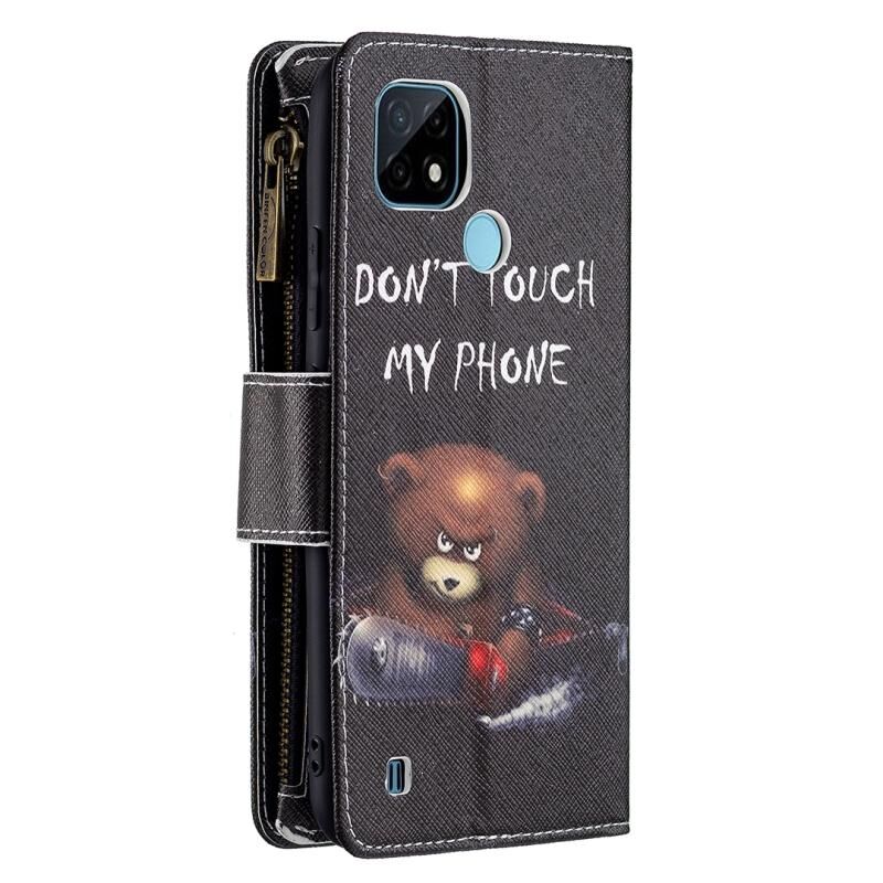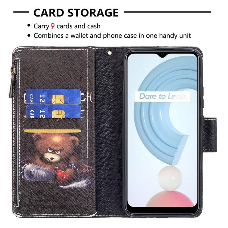 Θήκη δέρματος οριζόντιας αναδίπλωσης με φερμουάρ και σχέδια για OPPO Realme C21/C20 με βάση για κάρτες και πορτοφόλι (Αρκούδα)