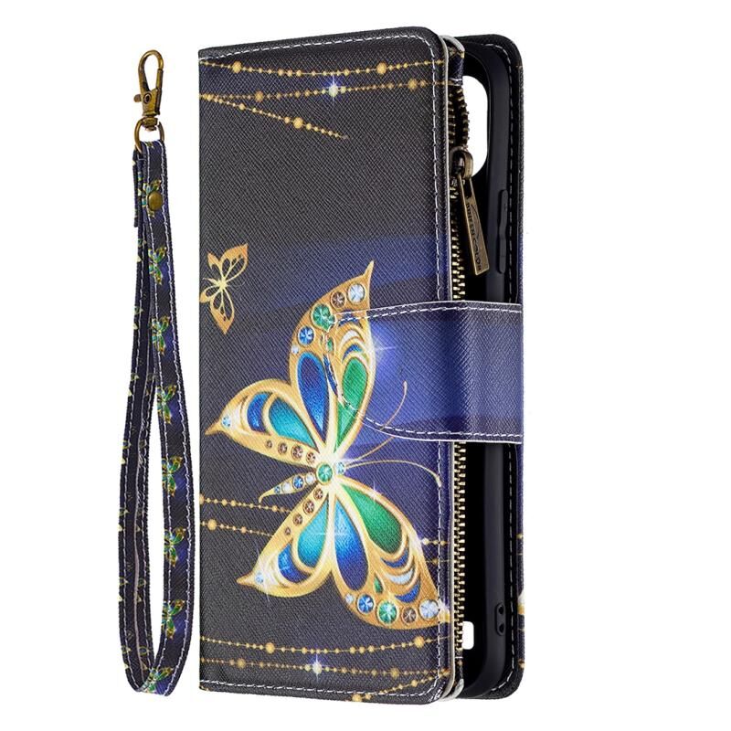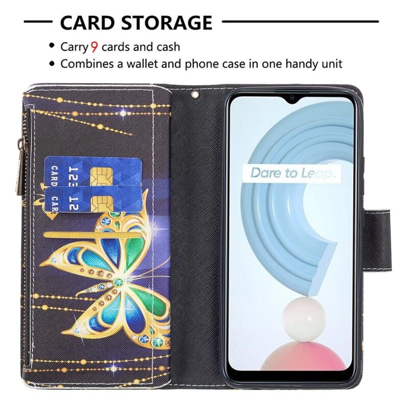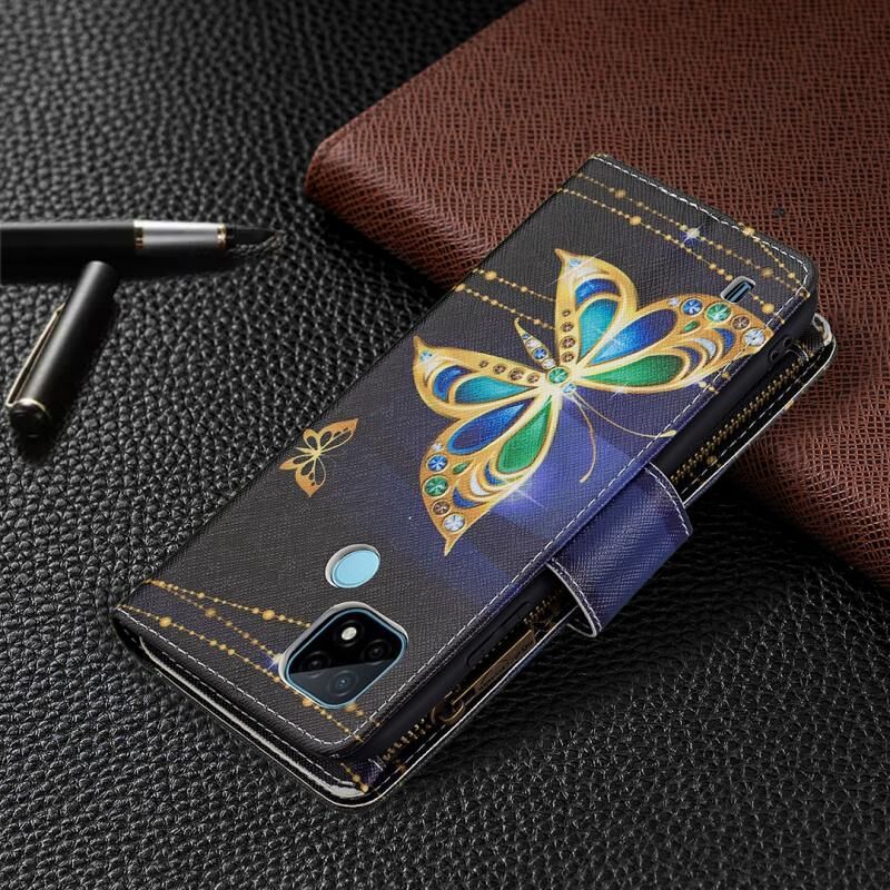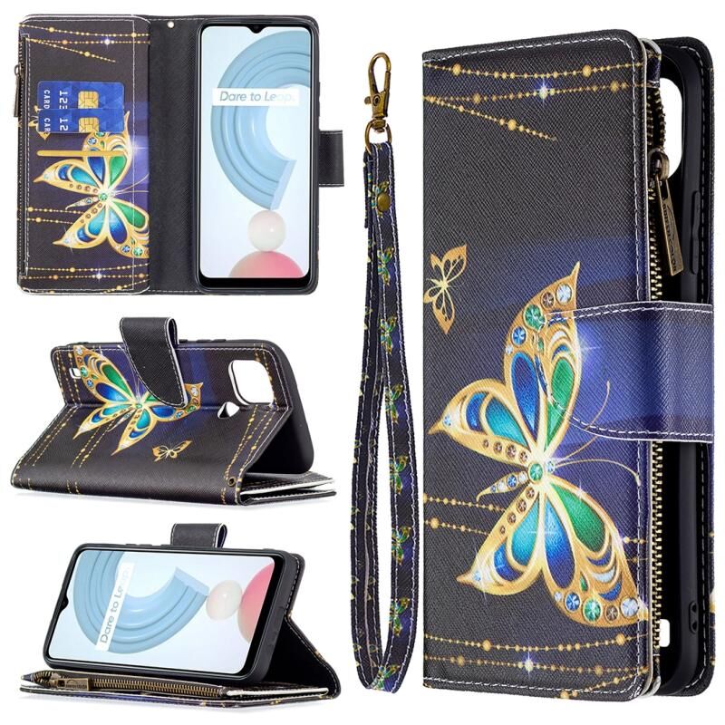 Θήκη δέρματος οριζόντιας αναδίπλωσης με φερμουάρ και σχέδια ζωγραφικής για OPPO Realme C21/C20 με βάση για κάρτες και πορτοφόλι (Μεγάλη Πεταλούδα)