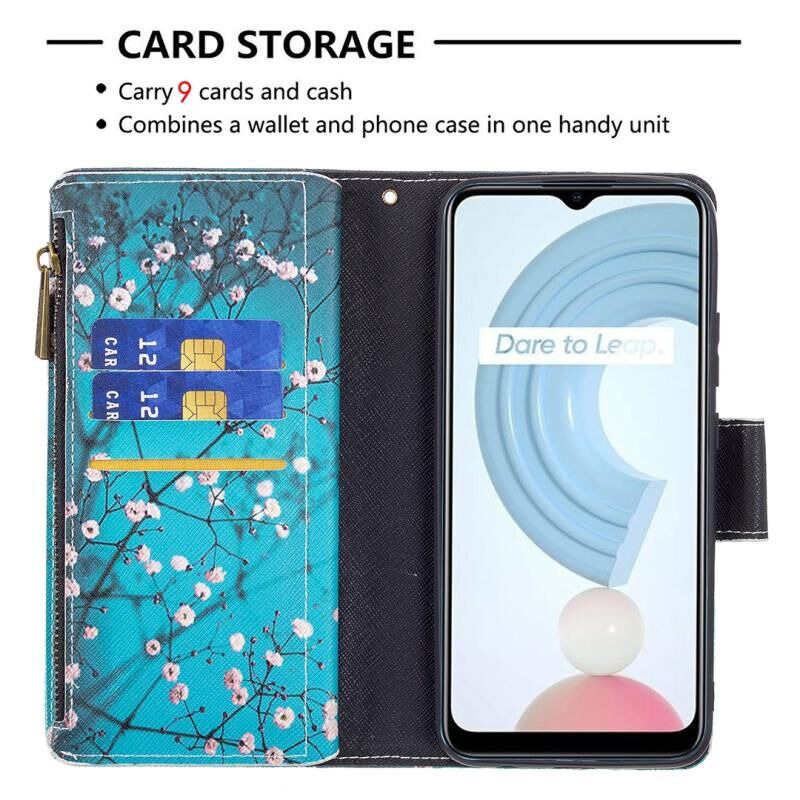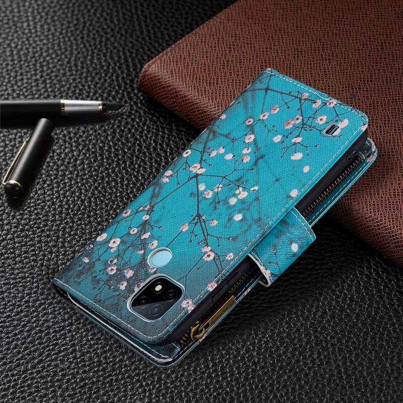 Θήκη δέρματος οριζόντιας αναδίπλωσης με φερμουάρ και σχέδια ζωγραφικής για OPPO Realme C21/C20 με βάση για κάρτες & πορτοφόλι (Λουλούδι Δαμασκηνιάς)
