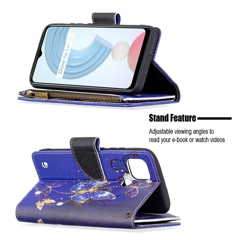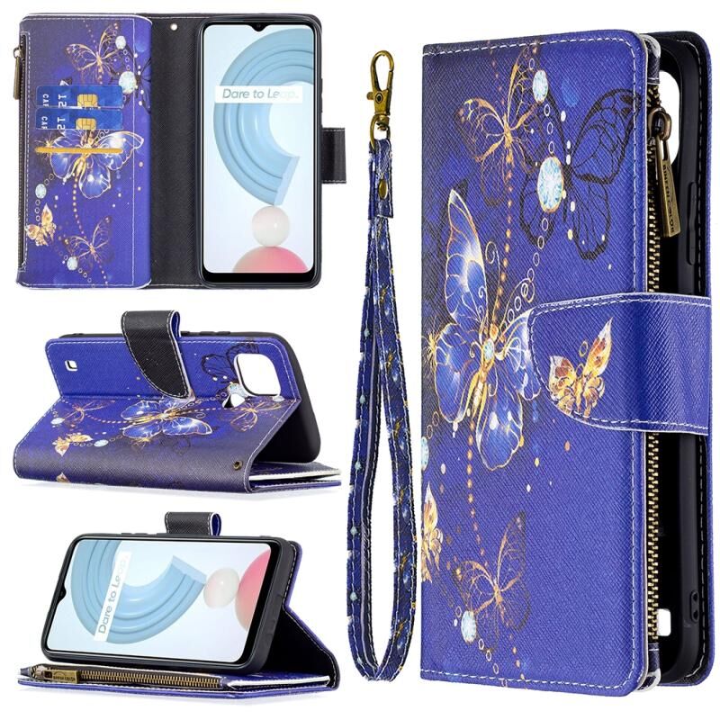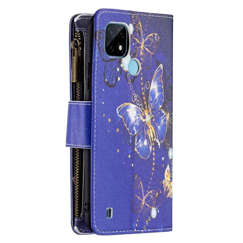 Θήκη δέρματος οριζόντιας αναδίπλωσης με φερμουάρ και σχέδια ζωγραφικής για OPPO Realme C21/C20 με βάση για κάρτες και πορτοφόλι (Μωβ Πεταλούδα)