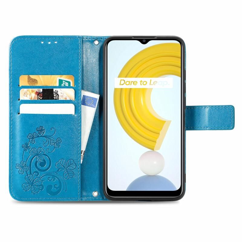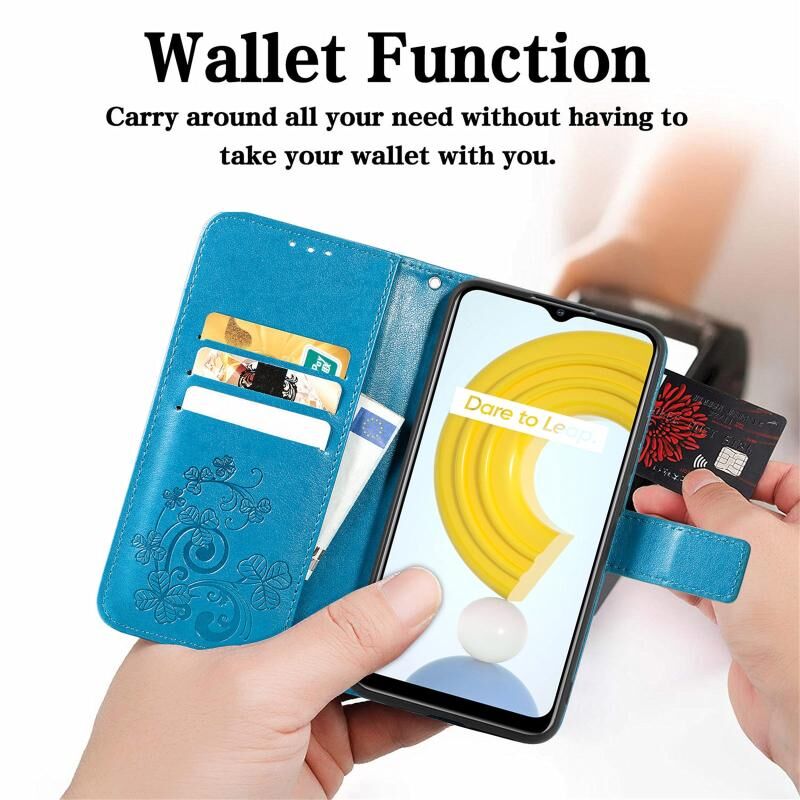 Για OPPO Realme C21 Θήκη Προστασίας Κινητού Δερμάτινη με Κούμπωμα Τριφυλλιού, Ανάγλυφο, με Λουρί, Θήκη Καρτών, Πορτοφόλι & Λειτουργία Στήριξης (Χρυσό Ρόδι)