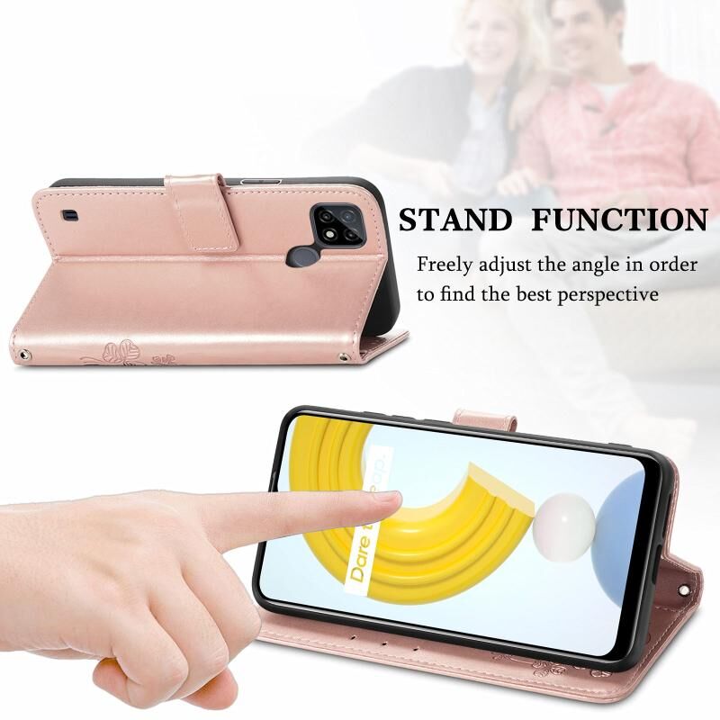 Για OPPO Realme C21 Θήκη Προστασίας Κινητού Δερμάτινη με Κούμπωμα Τριφυλλιού, Ανάγλυφο, με Λουρί, Θήκη Καρτών, Πορτοφόλι & Λειτουργία Στήριξης (Χρυσό Ρόδι)