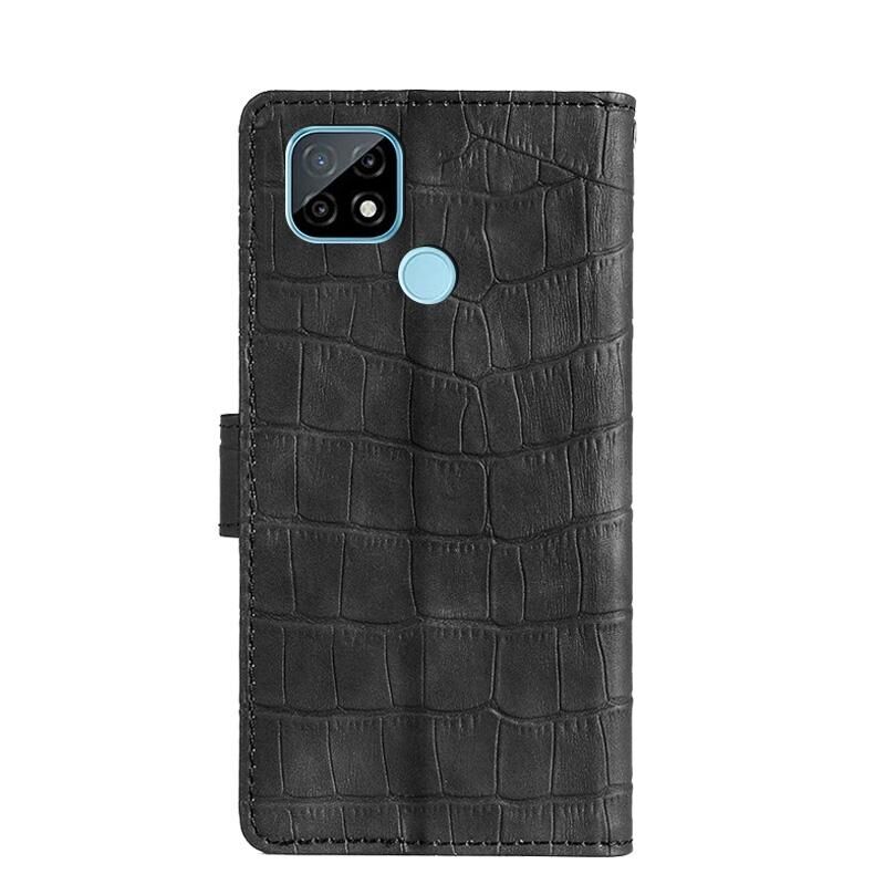 Θήκη τηλεφώνου από δέρμα με μαγνητικό κούμπωμα και υφή κροκόδειλου για OPPO Realme C21 (Μαύρο)