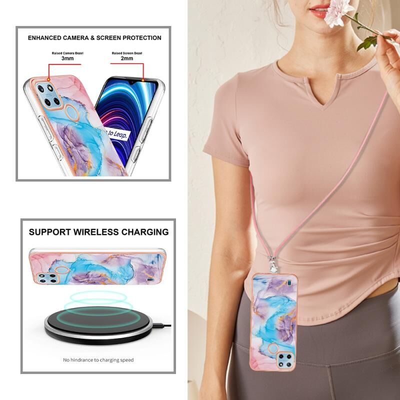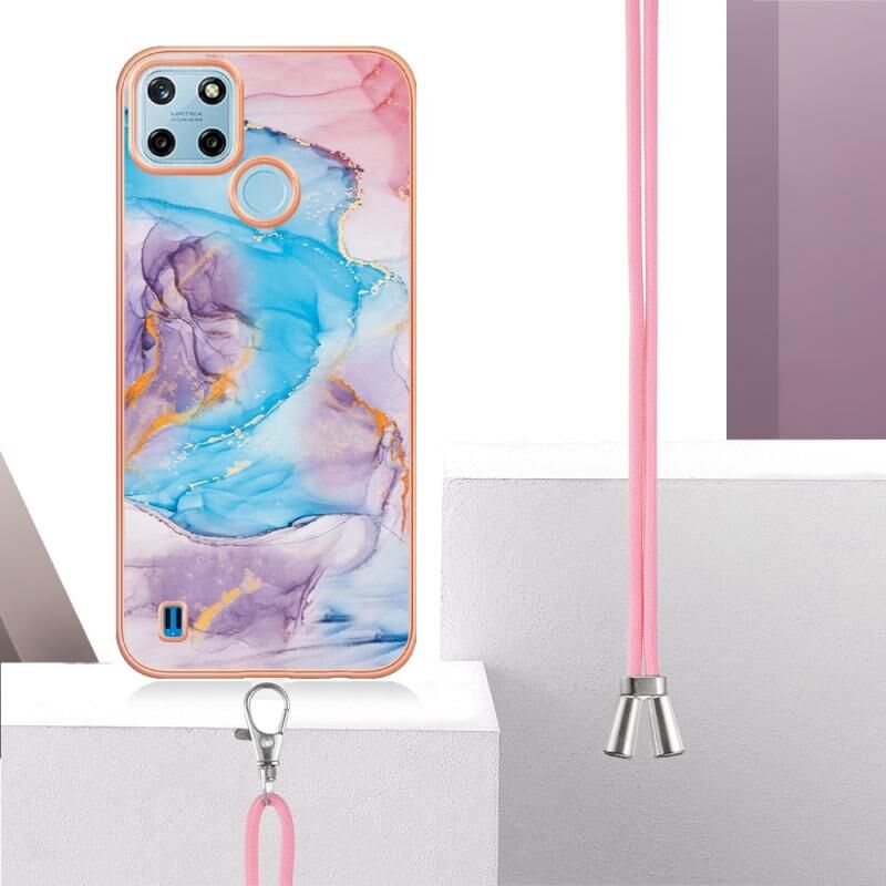 Θήκη τηλεφώνου OPPO Realme C21Y / C25Y με επιμετάλλωση IMD TPU με κορδόνι (Ροζ Λέπια)