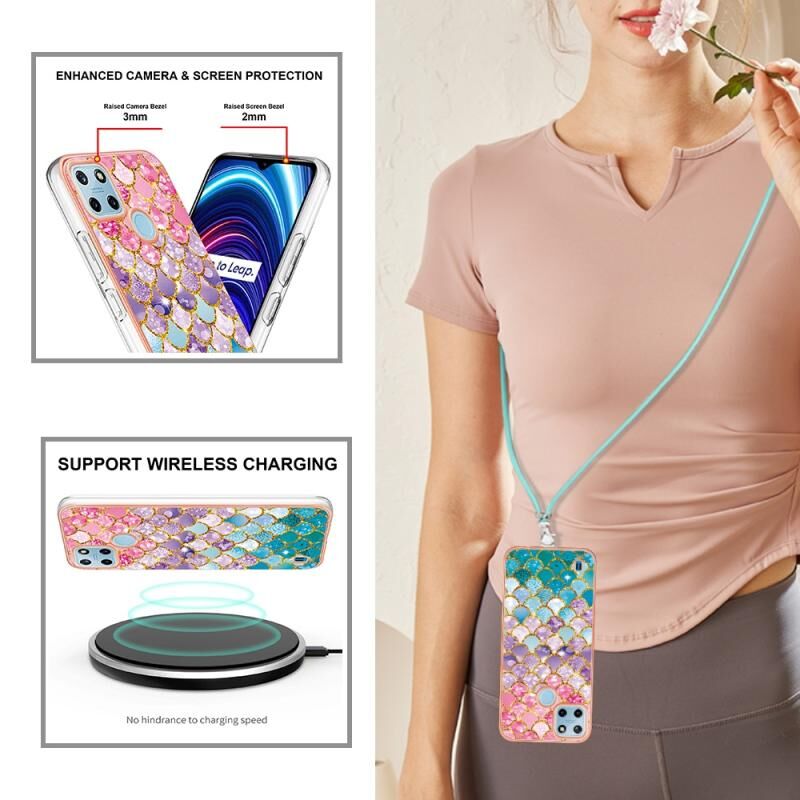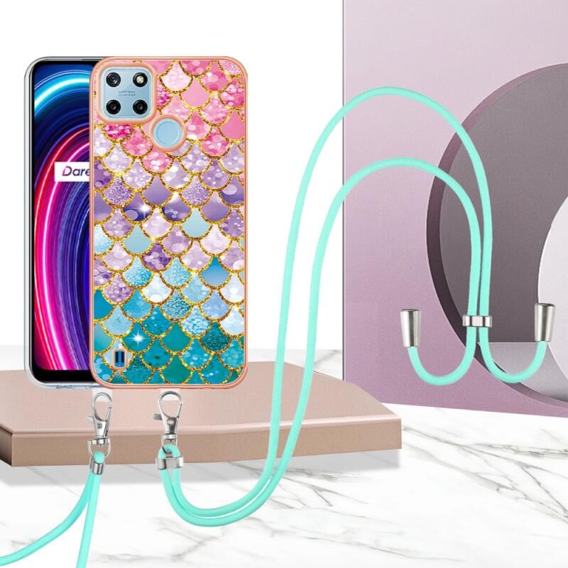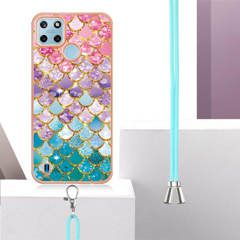 Θήκη τηλεφώνου OPPO Realme C21Y / C25Y με επιμετάλλωση IMD TPU με κορδόνι (Πολύχρωμες Λέπια)