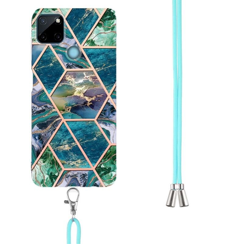 Θήκη τηλεφώνου TPU με ηλεκτρολυτική επιμετάλλωση και μαρμάρινο συνδυασμό για OPPO Realme C21Y με κορδόνι (Σκούρο Μωβ)
