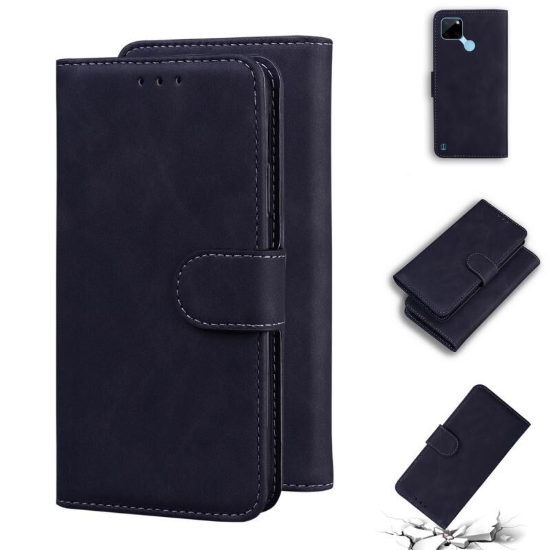 Θήκη τηλεφώνου από δέρμα με αναδιπλούμενο καπάκι και αίσθηση δέρματος, σε καθαρό χρώμα για OPPO Realme C21Y (Μωβ)