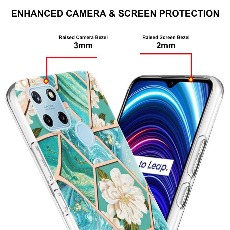 Θήκη τηλεφώνου TPU με σχέδιο μαρμάρου και λουλουδιών για OPPO Realme C21Y (Ροζ Λουλούδι)