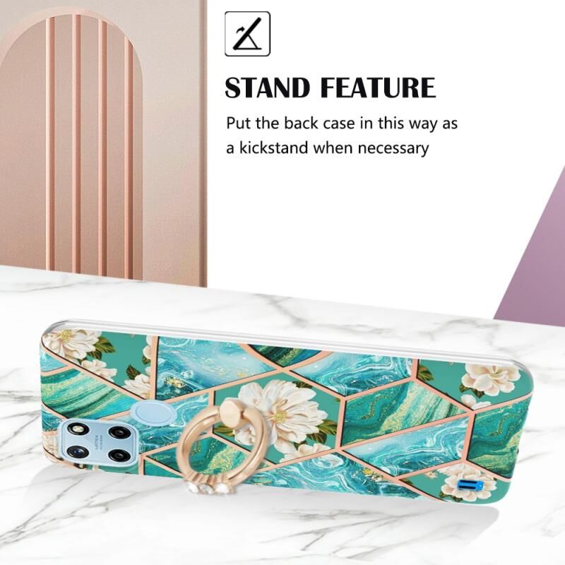 Θήκη για OPPO Realme C21Y, Σplicing Marble Flower Pattern TPU με Δακτύλιο Στήριξης (Ροζ Λουλούδι)
