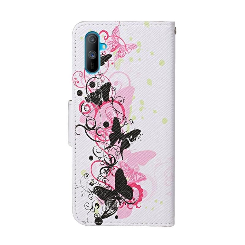 Θήκη δέρματος οριζόντιας αναδίπλωσης με σχέδιο πολύχρωμης ζωγραφικής για OPPO Realme C3 με βάση & υποδοχές καρτών & πορτοφόλι (Πεταλούδα)