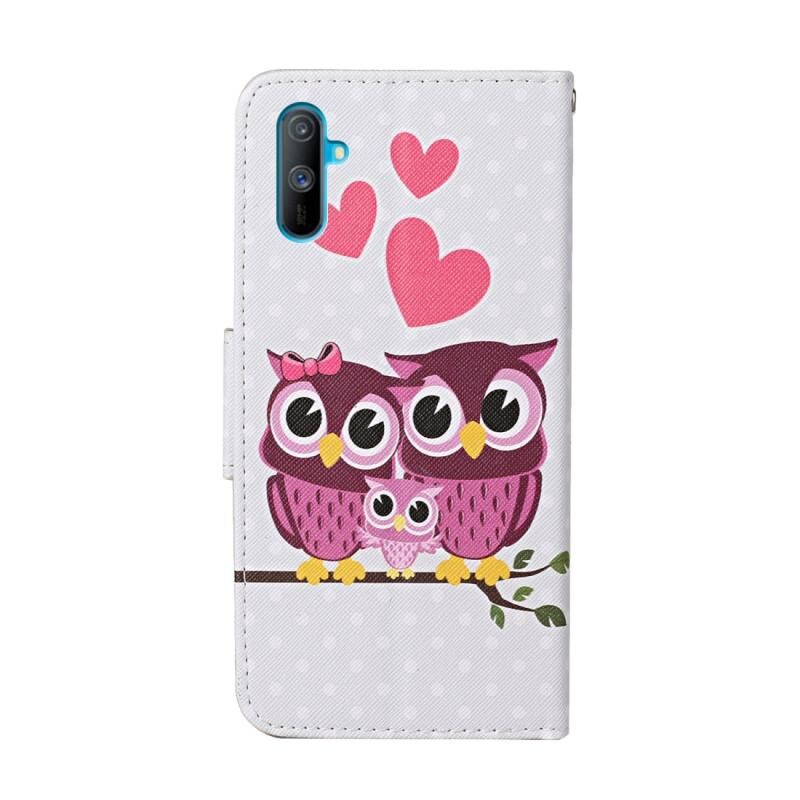 Θήκη δέρματος οριζόντιας αναδίπλωσης με σχέδιο πολύχρωμης ζωγραφικής για OPPO Realme C3 με βάση & υποδοχές καρτών & πορτοφόλι (Κουκουβάγια)