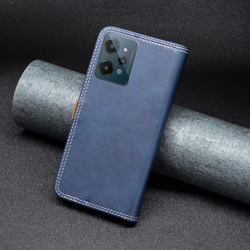 Θήκη τηλεφώνου δερμάτινη για OPPO Realme C31, διπλής ραφής, σε μαύρο χρώμα.